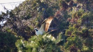 しばらく進むと、遠~くの鉄塔の端に猛禽が・・、どうもハヤブサのようで、よく見つけますね~