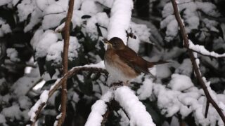 自然通信 2/8思いがけない雪と白梅、シロハラやメジロ、アオジなど