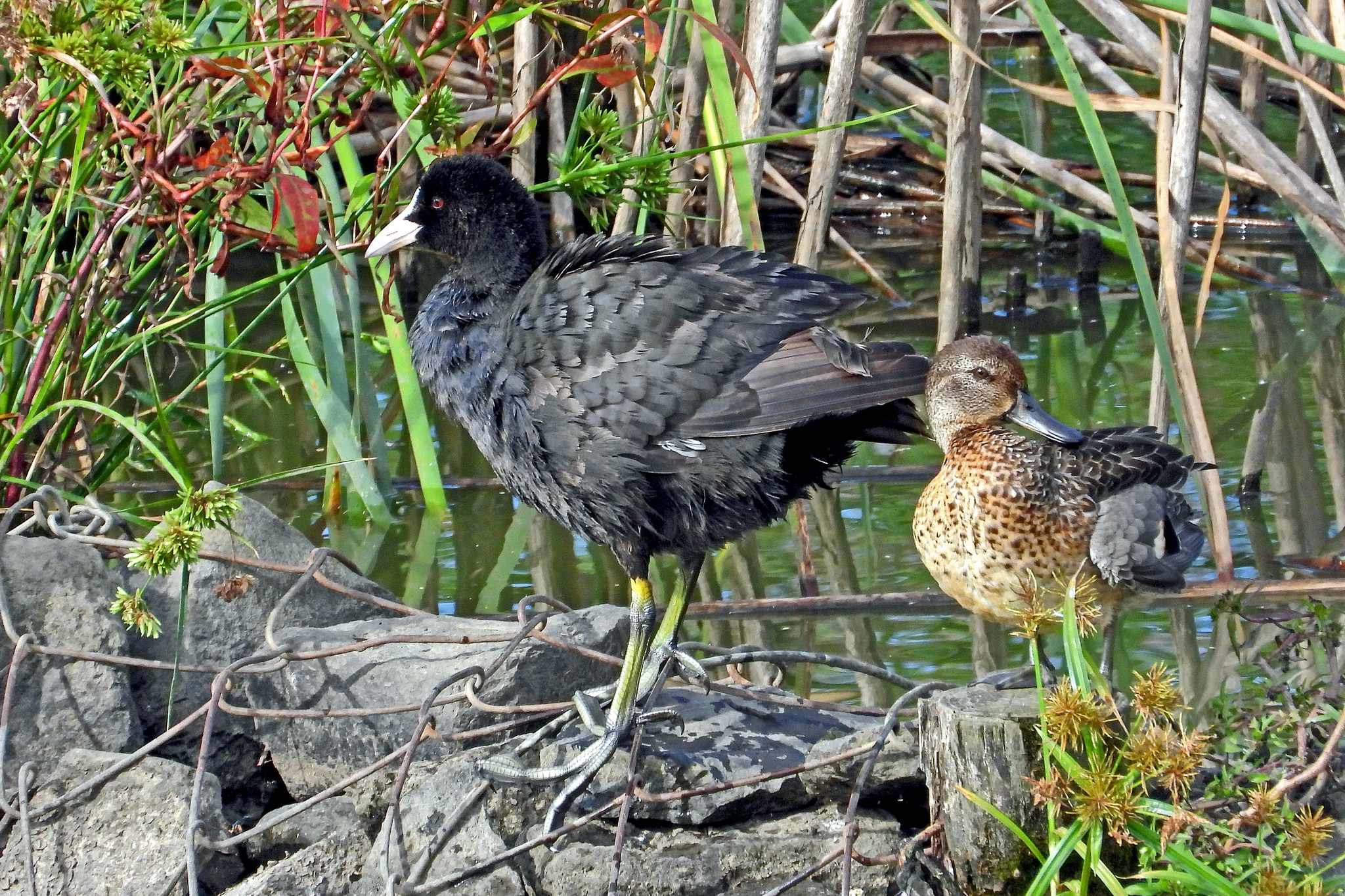 ん、いつの間に現れたのか、石組みに「オオバン」が居ました。