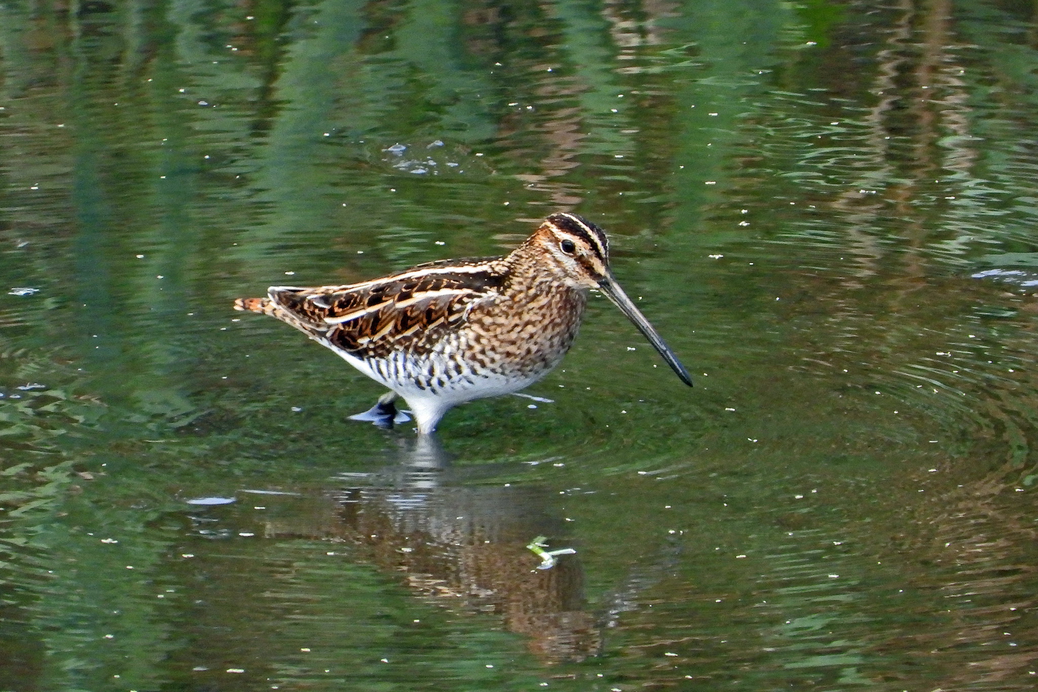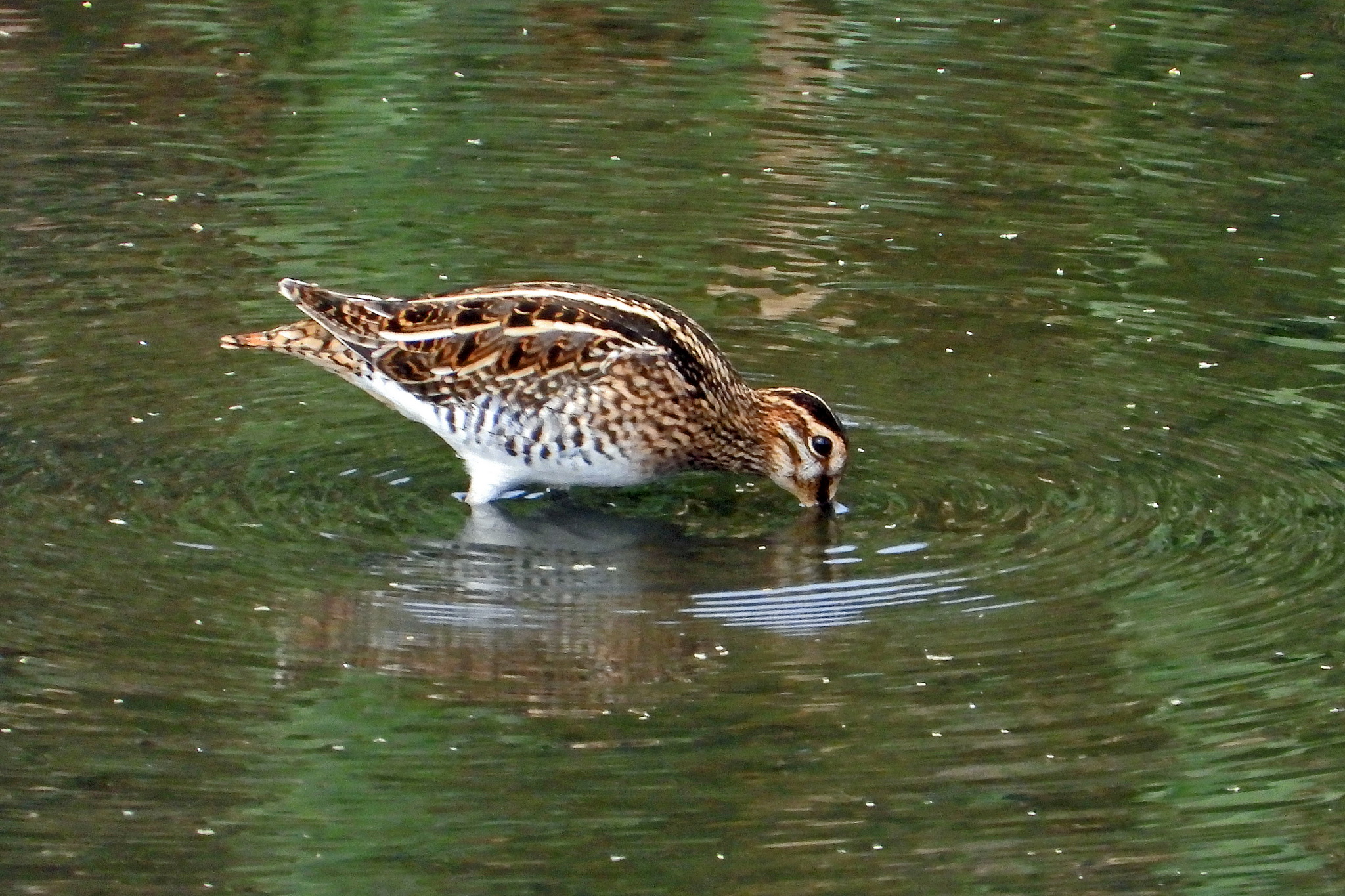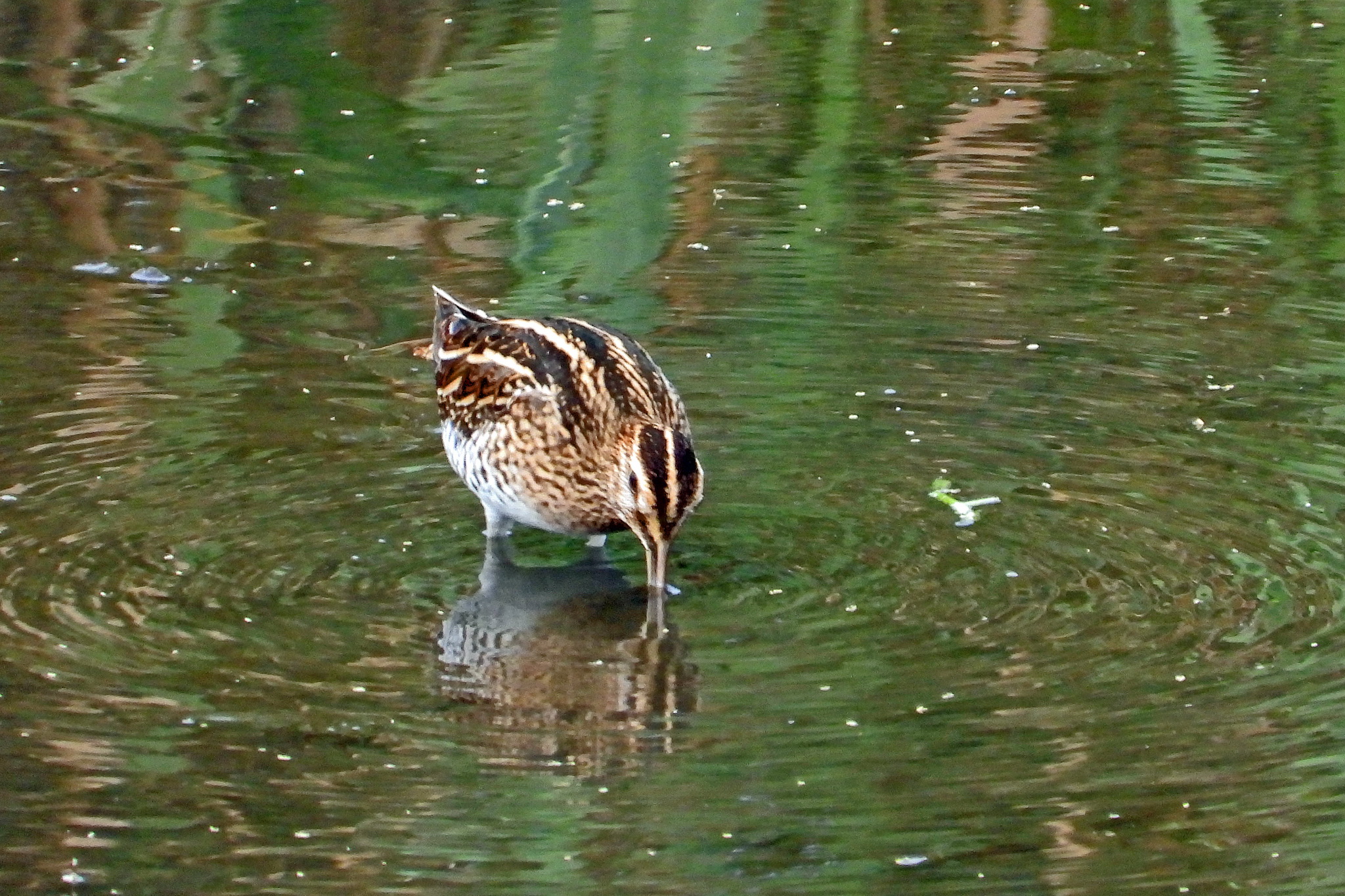 おっ、水没した湿地帯で「タシギ」が食事をしてました。