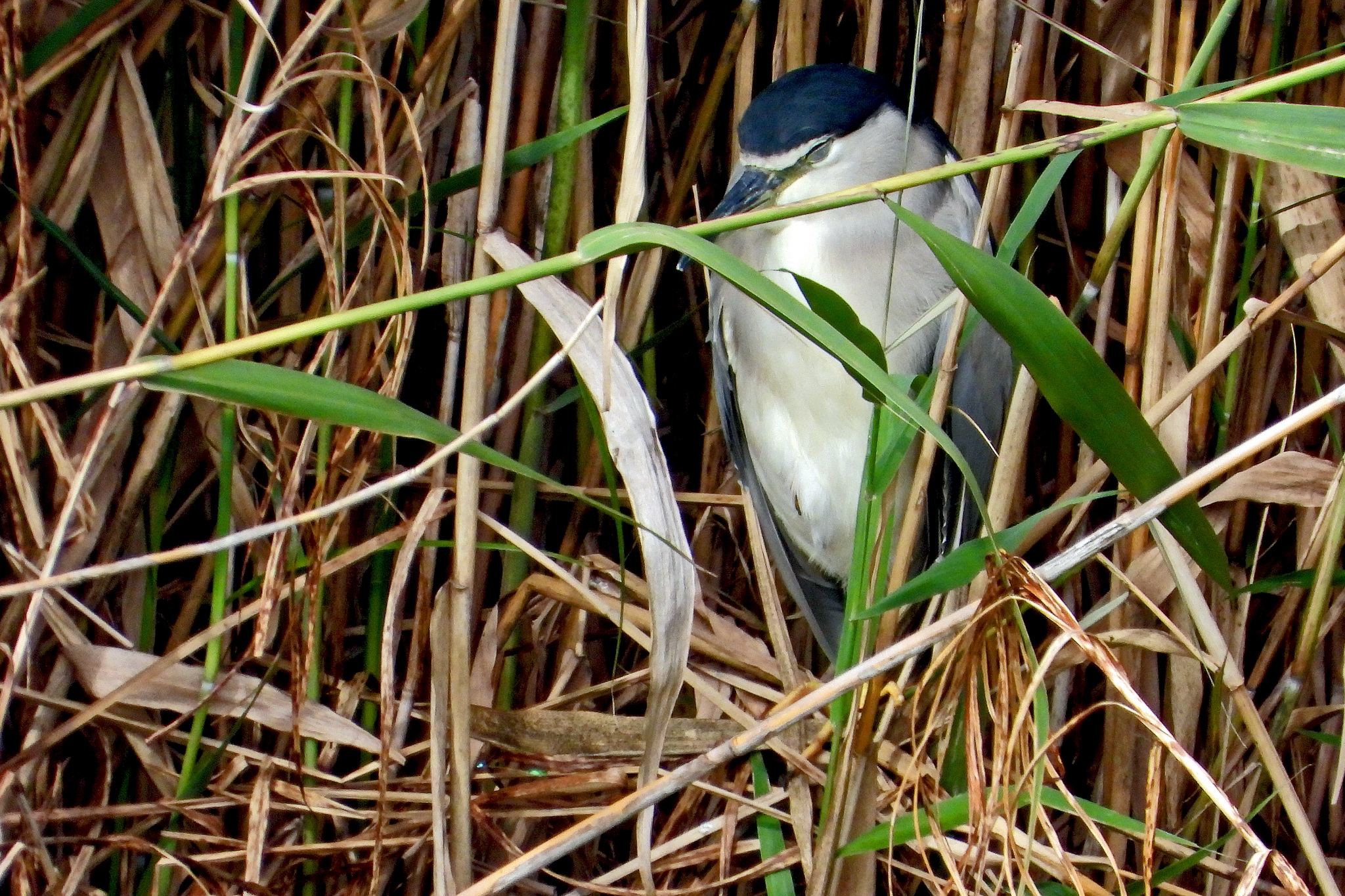 葦原をカメラで探っていると、「ゴイサギ」発見。