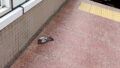 逆さになってパクッとしたところです。 頭がごま塩、口の中が赤くて、若鳥です。