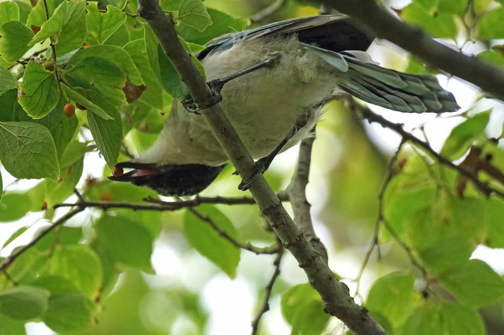 相変わらずオナガが賑やかでした。 数羽が目の前のエノキの枝に入って、実を啄んでいました。