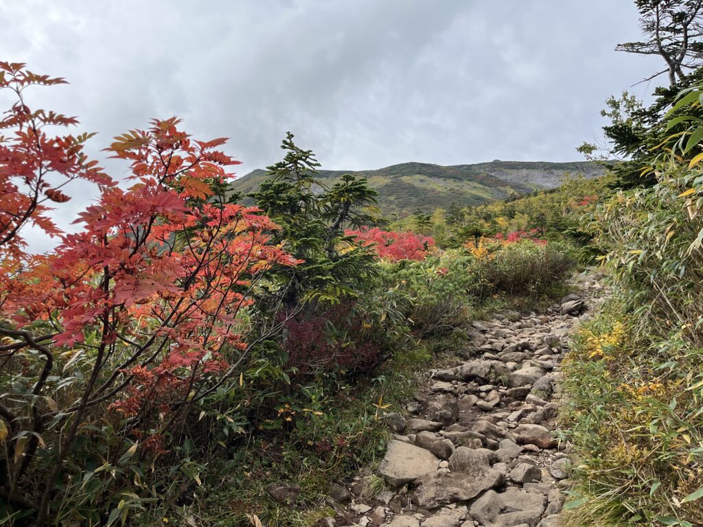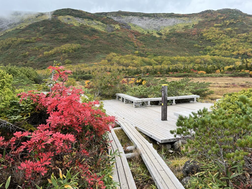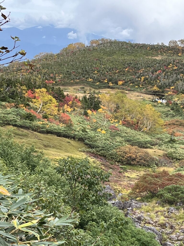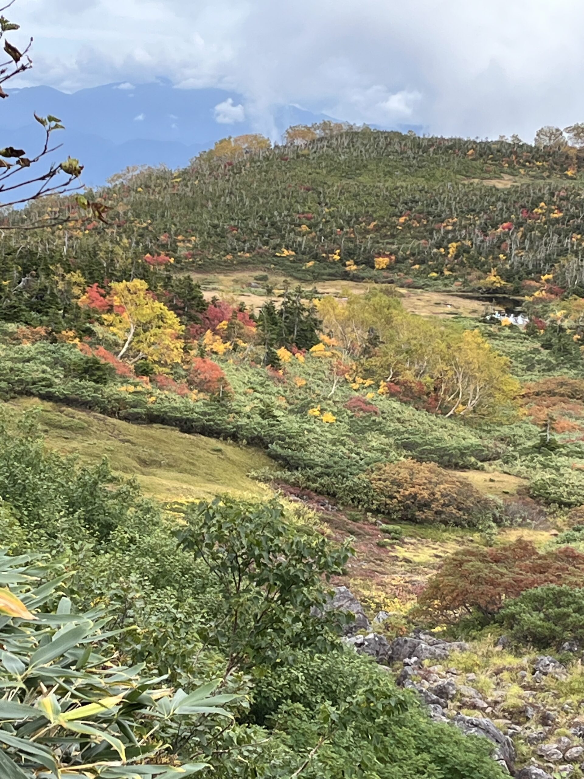 ゴンドラからロープウェイに乗り換え、白馬乗鞍岳を目指して登りました。途中の天狗原はほぼ紅葉の盛り科と思いました。