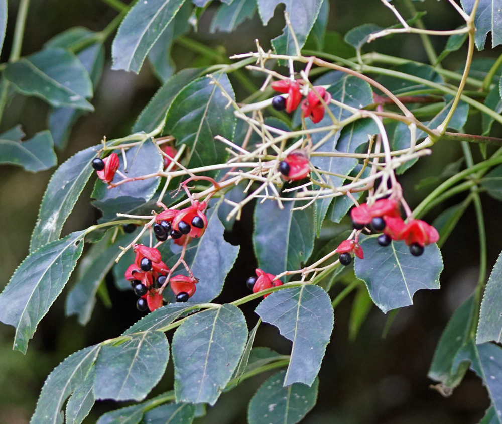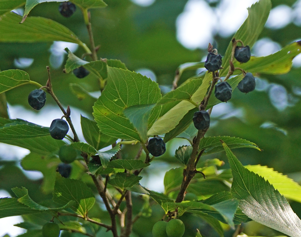 ムクノキの実は黒々、ちょっと皺もよって、甘そうになってきました。