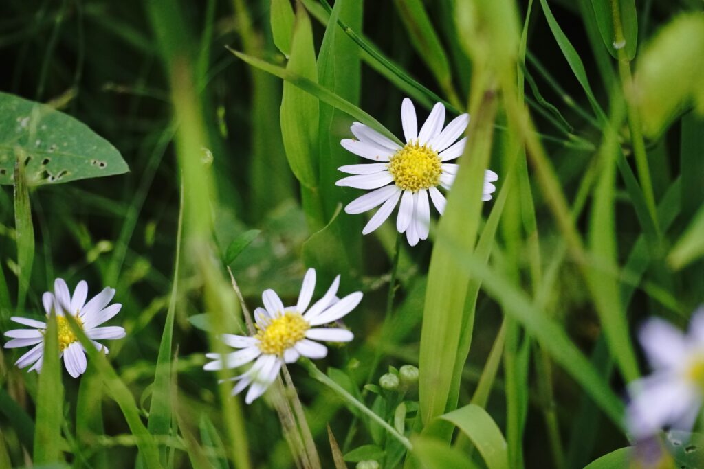 田んぼも殆ど稲刈りが終わり、心なしか虫やトンボ、蝶たちも少なくなった感じがしましたが、足元には秋の花々が。桜の葉は紅葉が始まっていました。