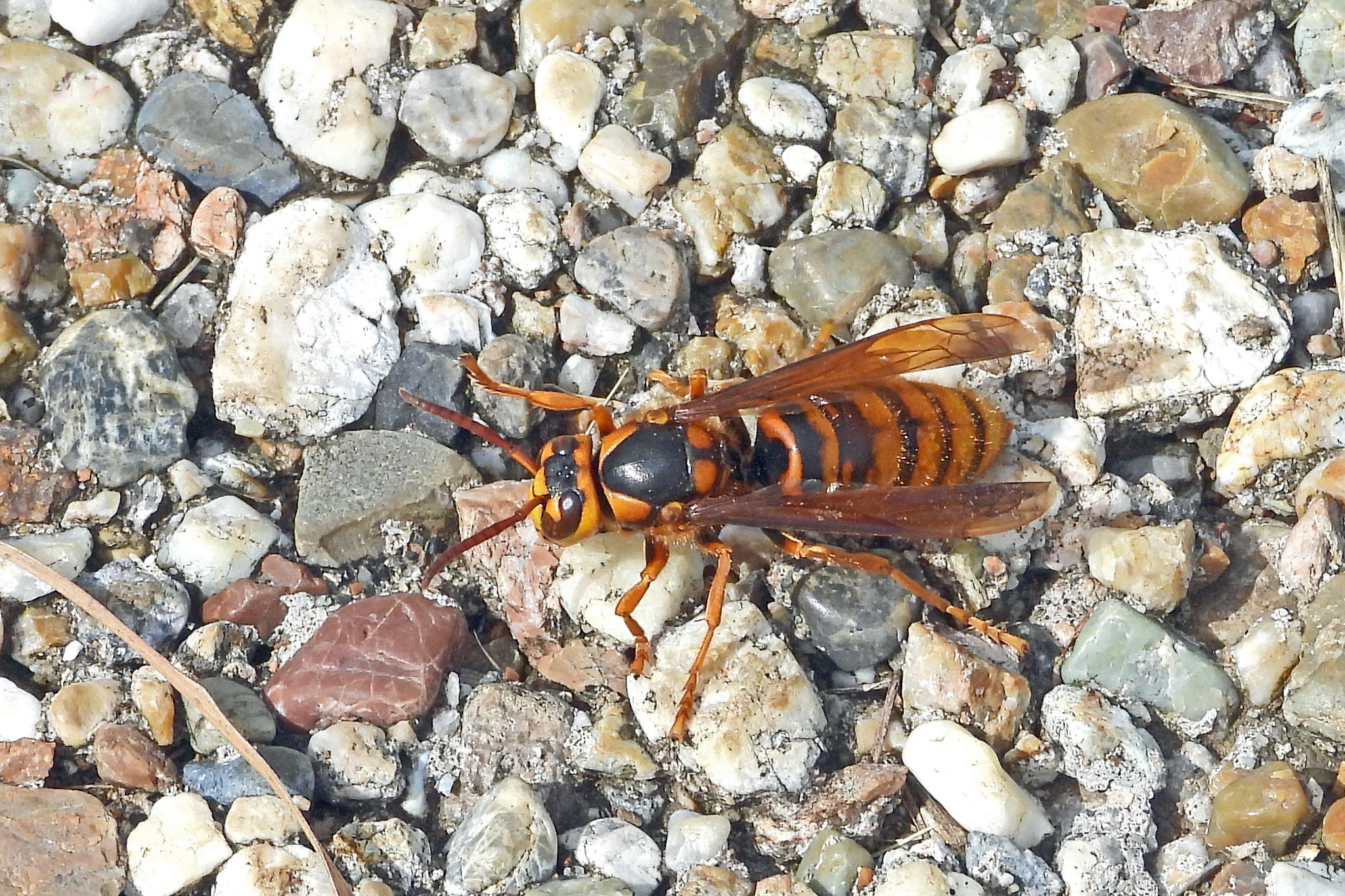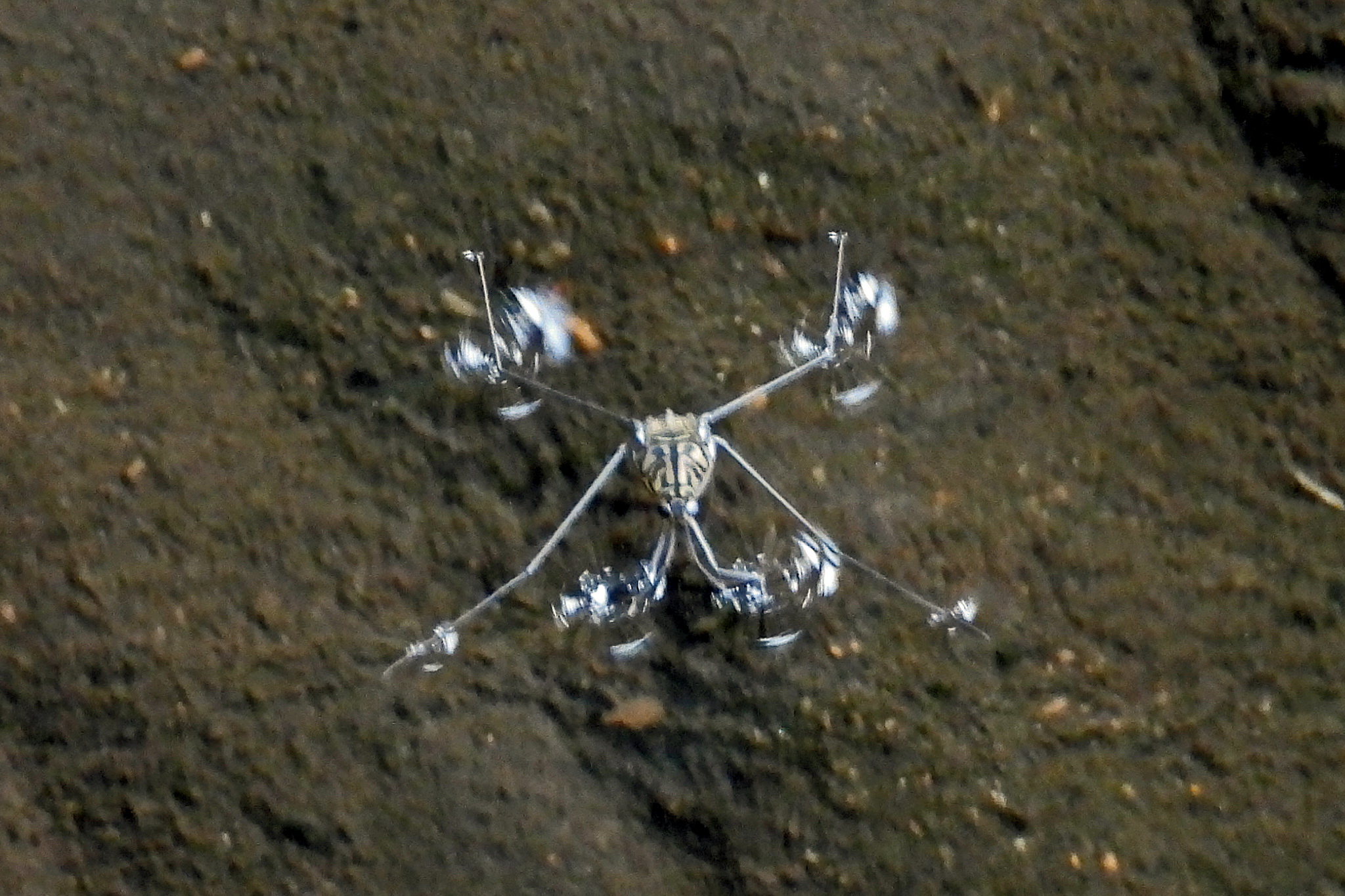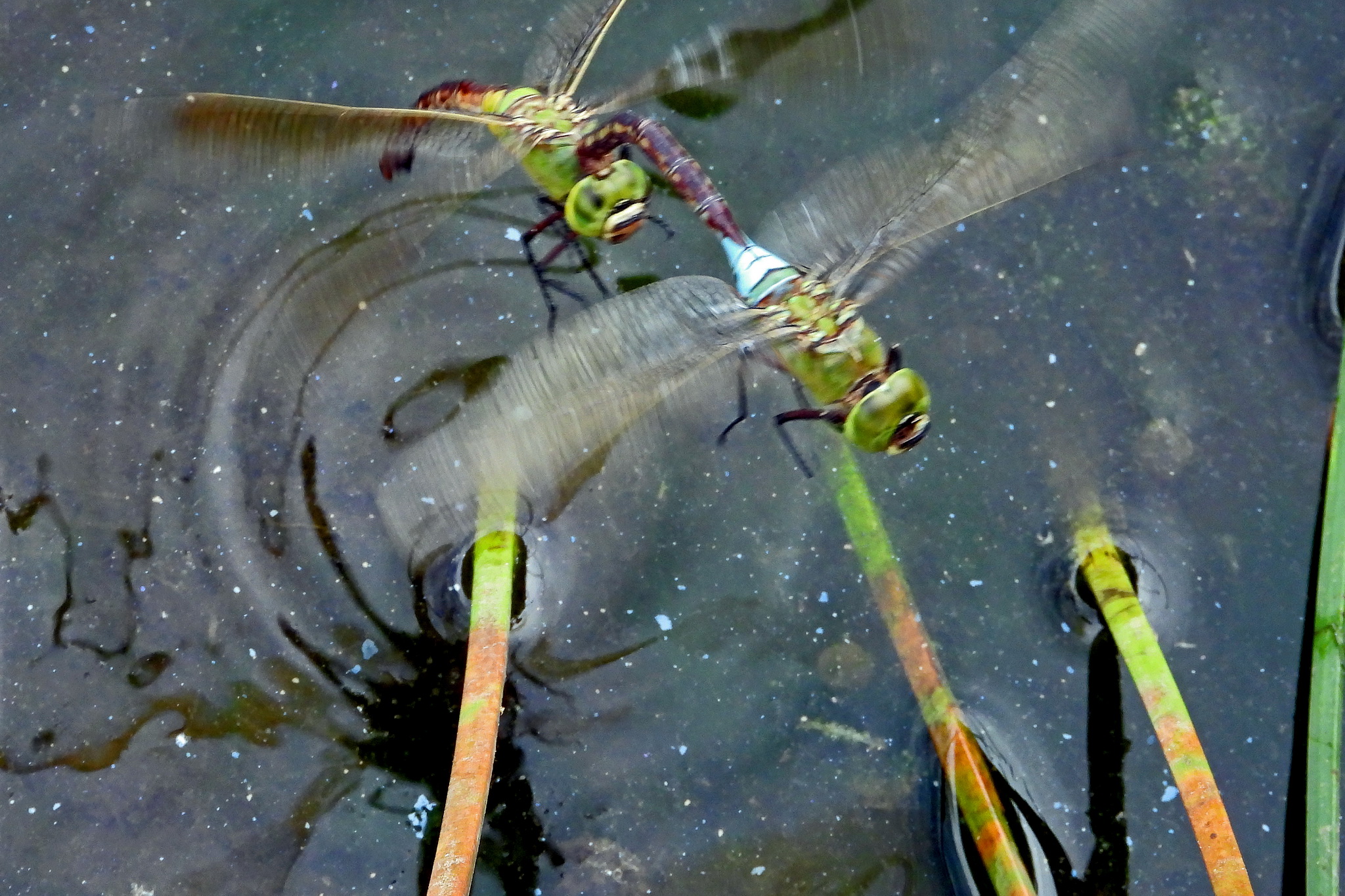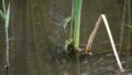 そばに「ハラビロカマキリ」が水に落ちてもがいてる。