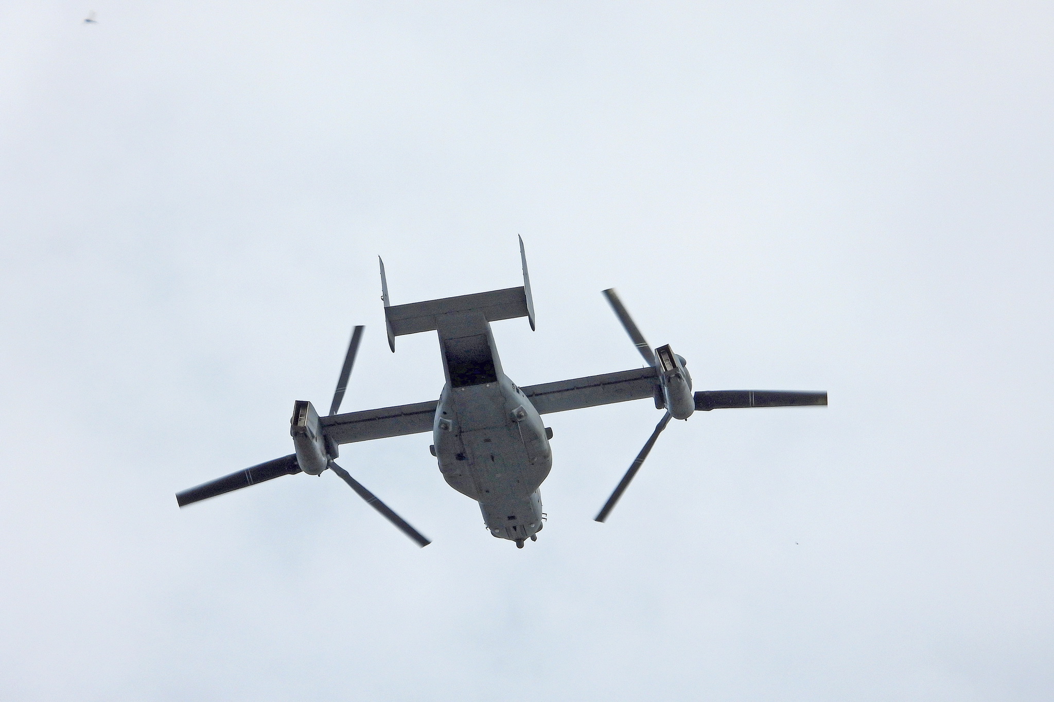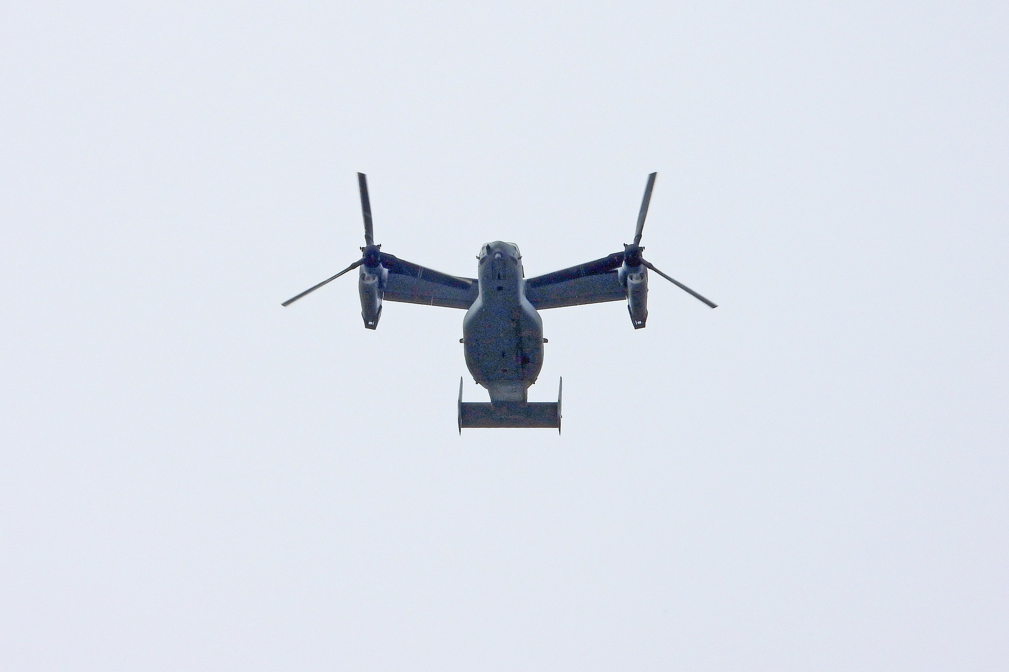 あっ、爆音がして、上空をオスプレイが飛び去って行きます。