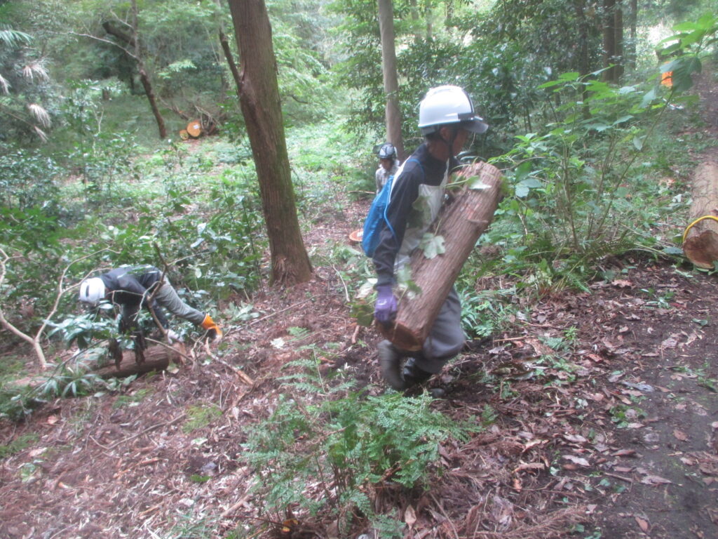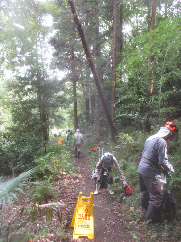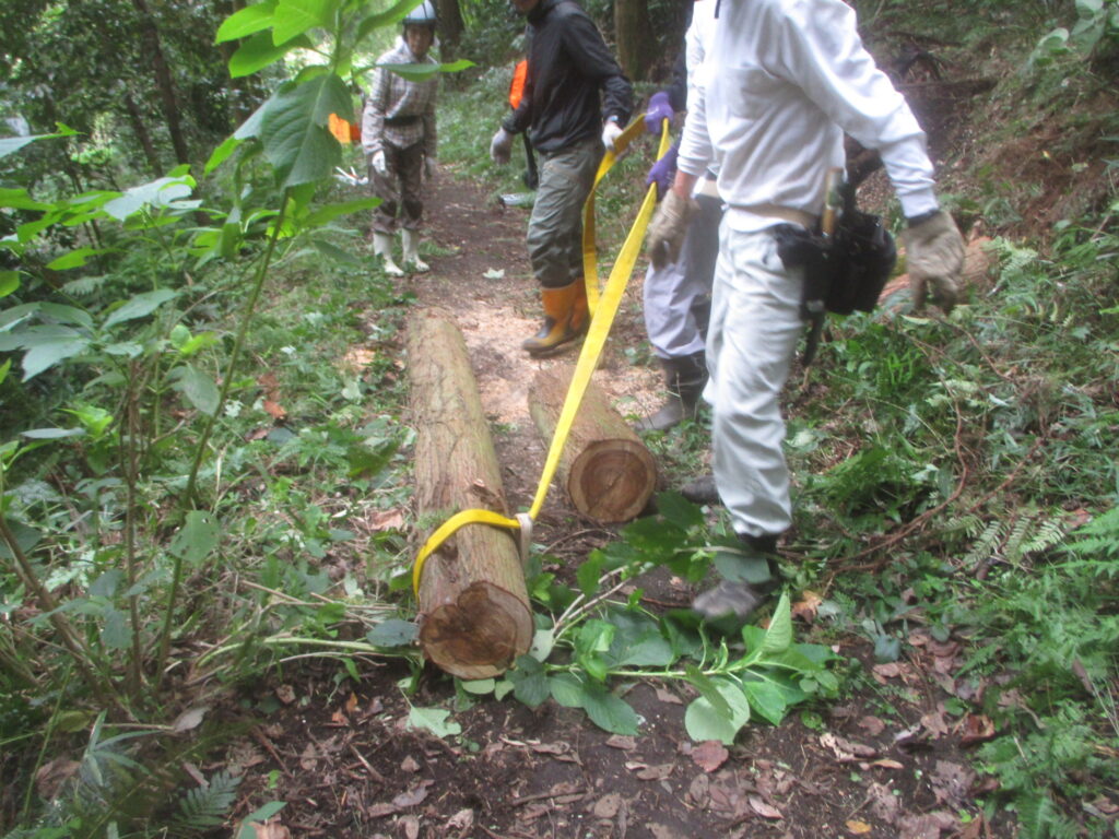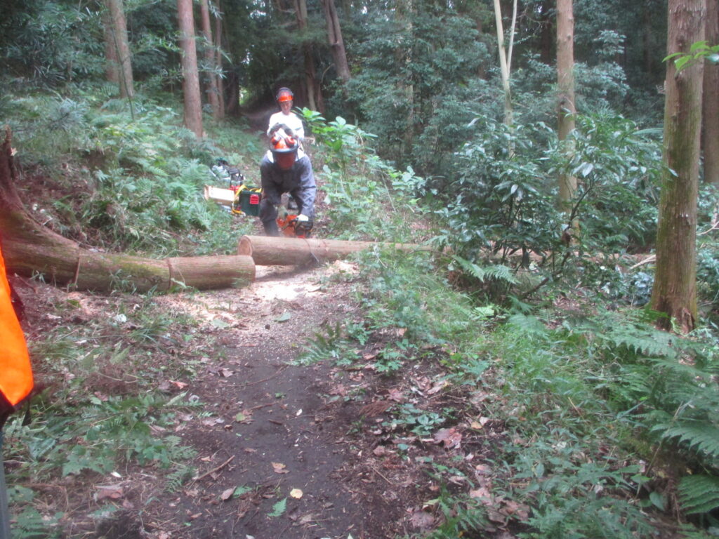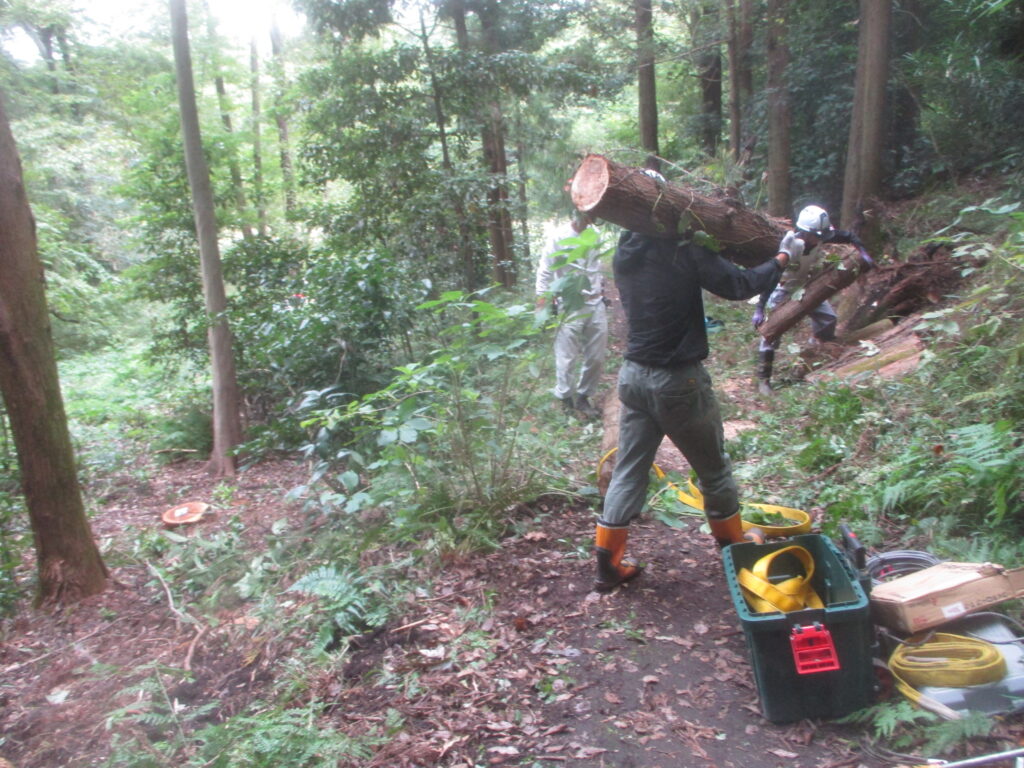 危険木除去作業 活動報告 2025.10.13 昨日の大庭自然探偵団の観察会の時、倒れて他の木に掛かっている危険木を発見し、その木が遊歩道の上にかかっているので,臨時作業で今日処理しました。 まず安全のためチルホールで倒れる方向を決めます。 チルホールで引くことで倒れた木がうまく外れました。 倒れた木の玉切り 玉切りした木をみんなで運び遊歩道を通れるようになりました。 藤沢サンクチュアリの保全作業を見学、体験参加を希望している方は次のアドレスにメールをお願いします。 kazunaritt@hotmail.com 髙橋和也