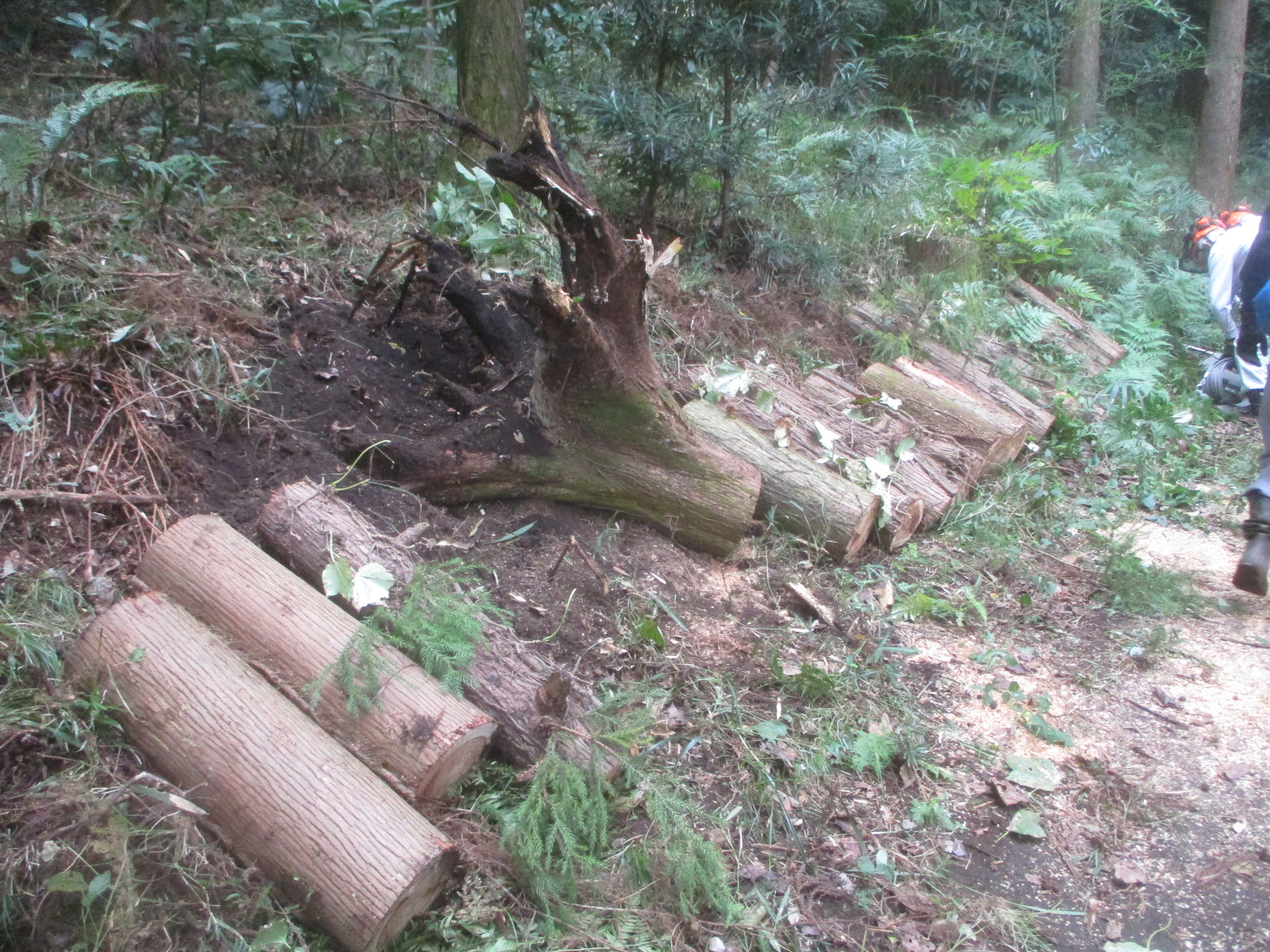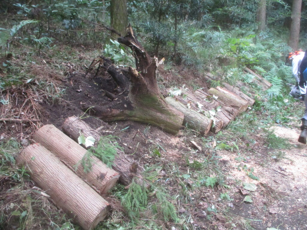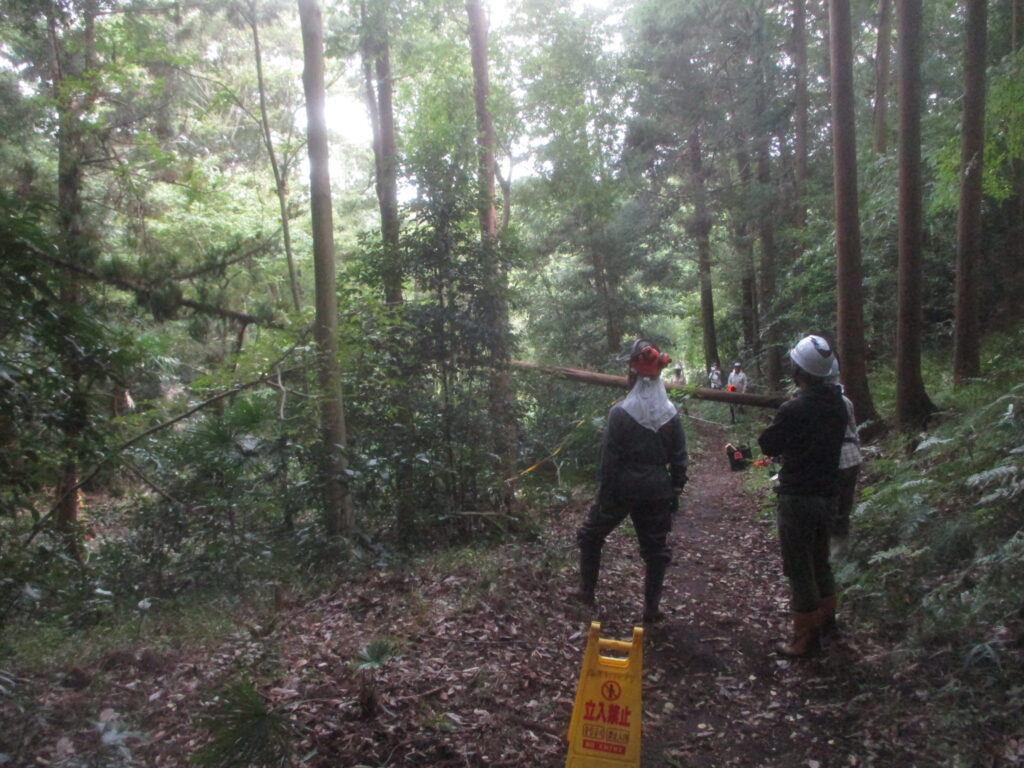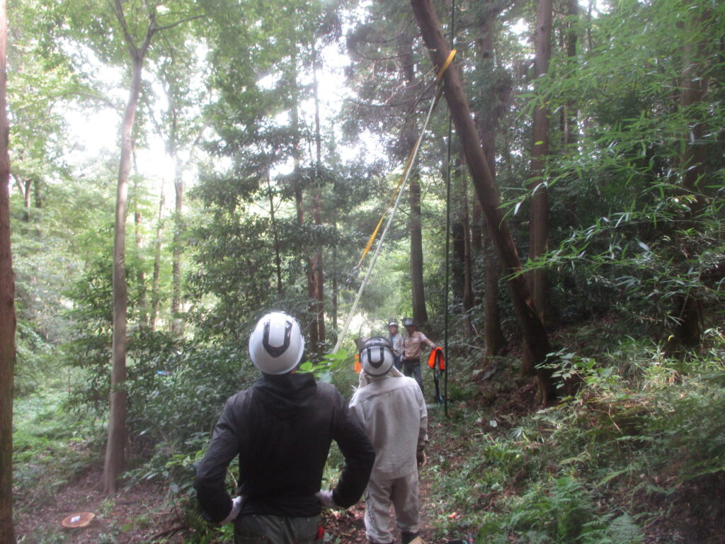 危険木除去作業 活動報告 2025.10.13 昨日の大庭自然探偵団の観察会の時、倒れて他の木に掛かっている危険木を発見し、その木が遊歩道の上にかかっているので,臨時作業で今日処理しました。 まず安全のためチルホールで倒れる方向を決めます。 チルホールで引くことで倒れた木がうまく外れました。 倒れた木の玉切り 玉切りした木をみんなで運び遊歩道を通れるようになりました。 藤沢サンクチュアリの保全作業を見学、体験参加を希望している方は次のアドレスにメールをお願いします。 kazunaritt@hotmail.com 髙橋和也