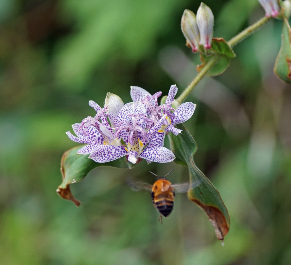 谷戸へ入る前の林縁で、ホトトギスの花が1つ。 季節の花です。