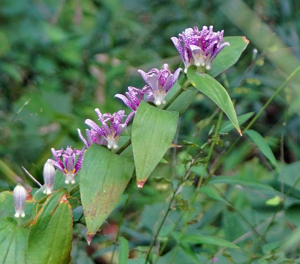 谷戸へ入る前の林縁で、ホトトギスの花が1つ。 季節の花です。