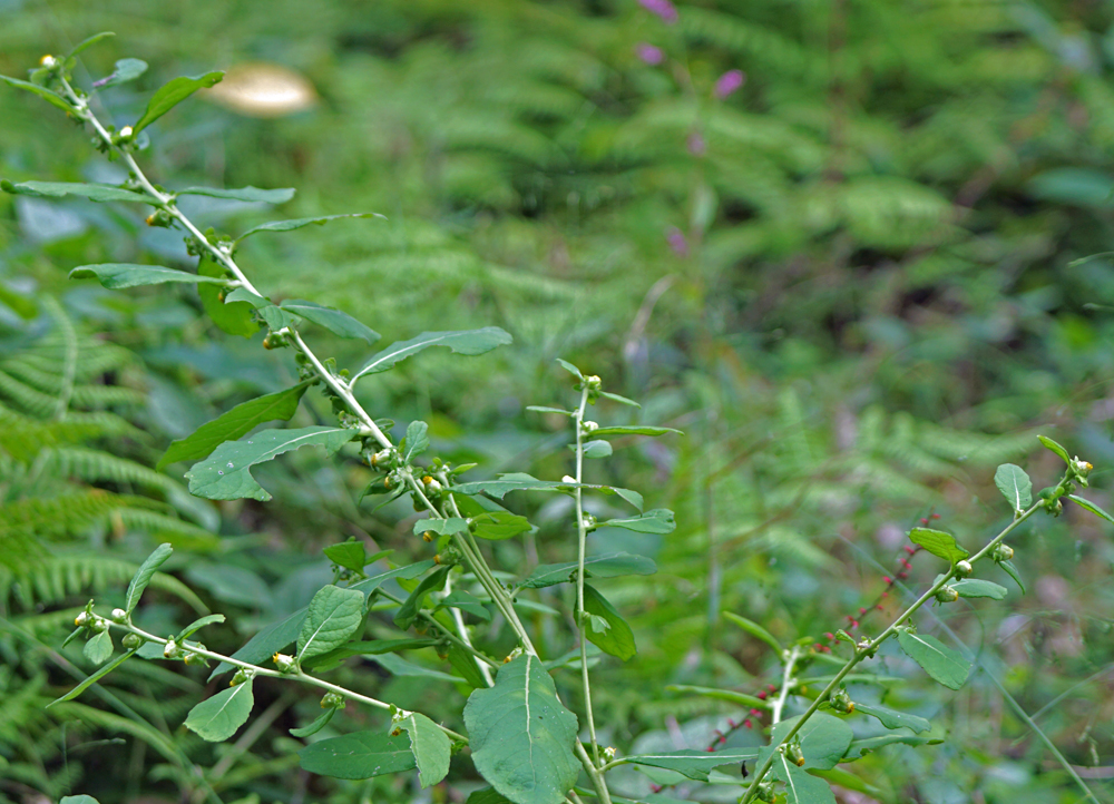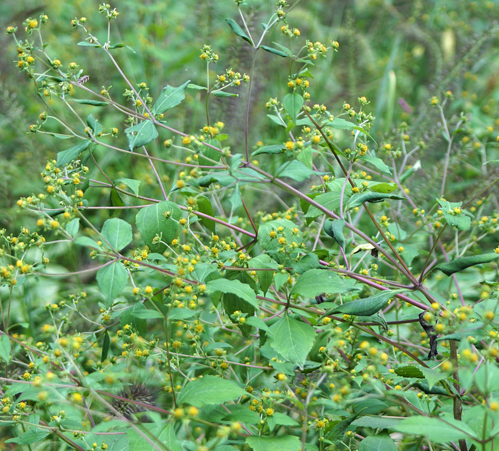 ヤブタバコが四方八方に枝を広げて、地味な花を咲かせて。