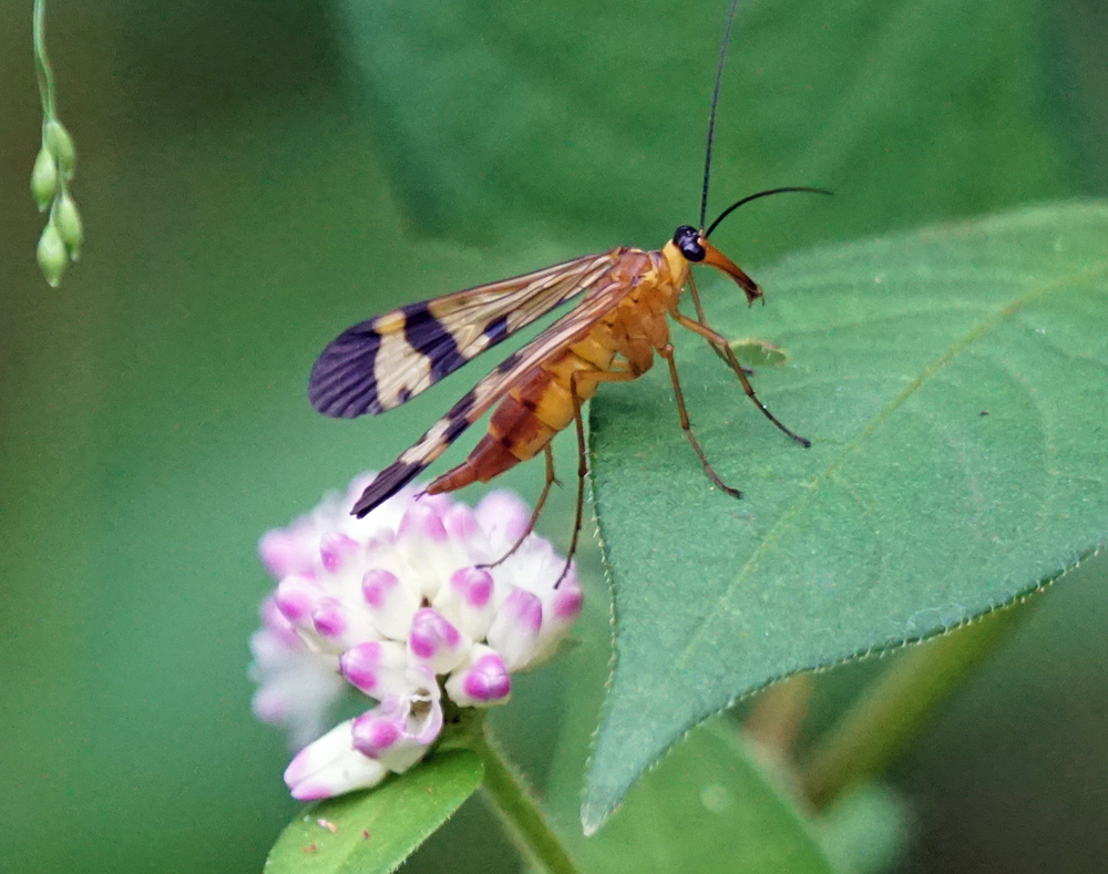 ミゾソバの葉上にヤマトシリアゲ。 今まで背中からばかりでしたが、初めて顔が見えて・・・。