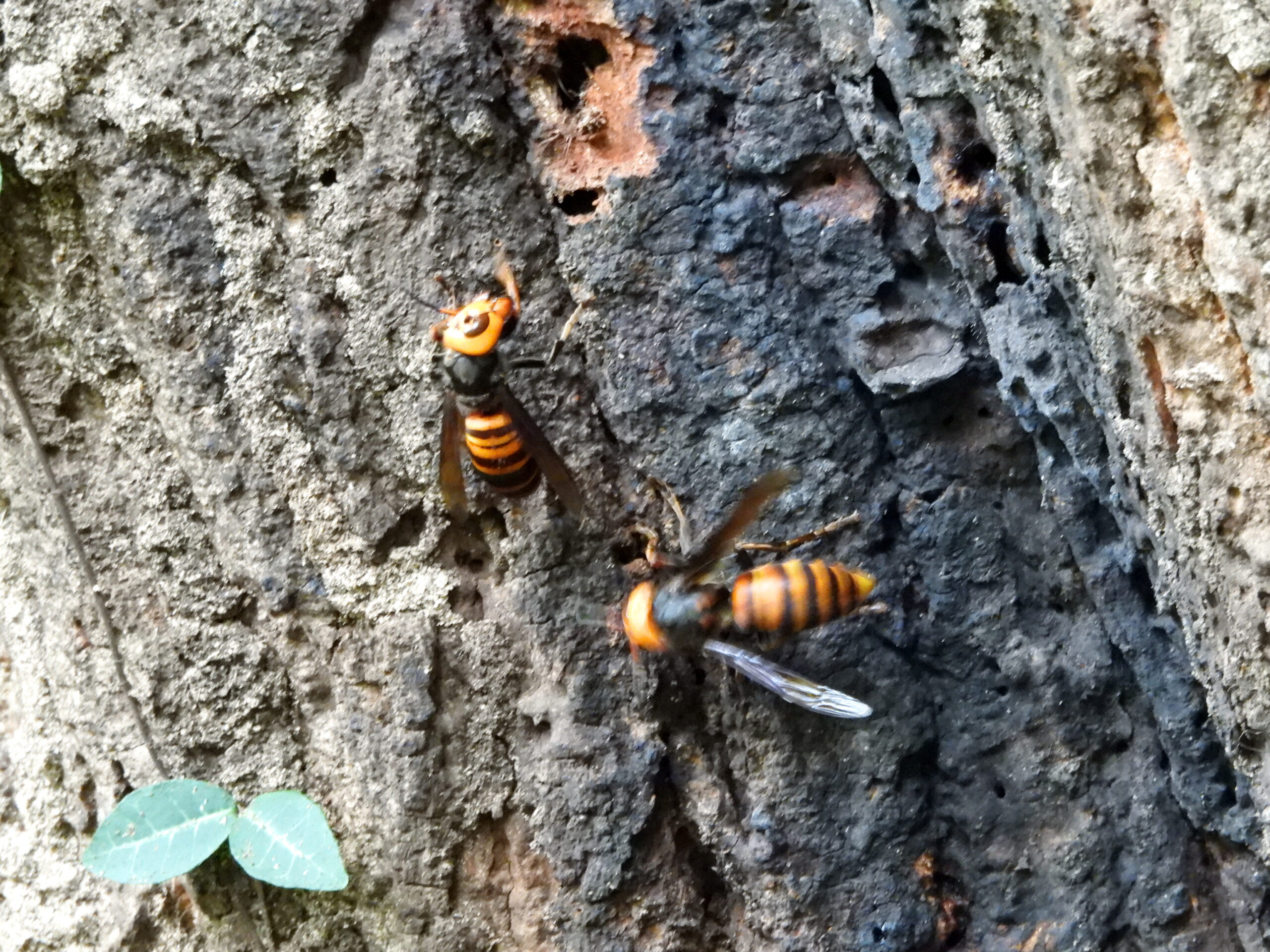 狭い山道そばには、オオスズメバチが。静か~に通りました。