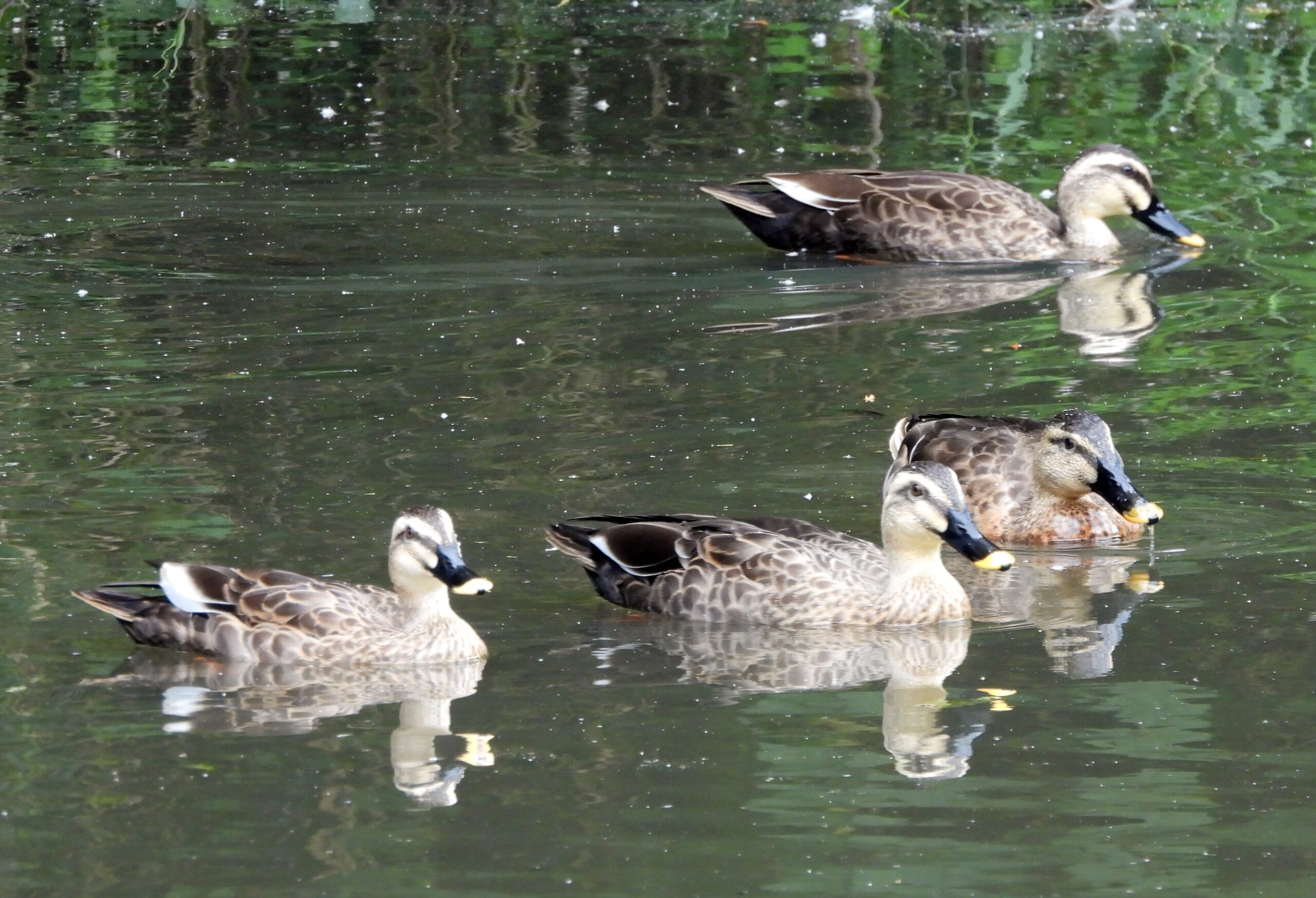 山道を下って人工池にはカルガモの集団、9月には全く居なかったので、良かったかな