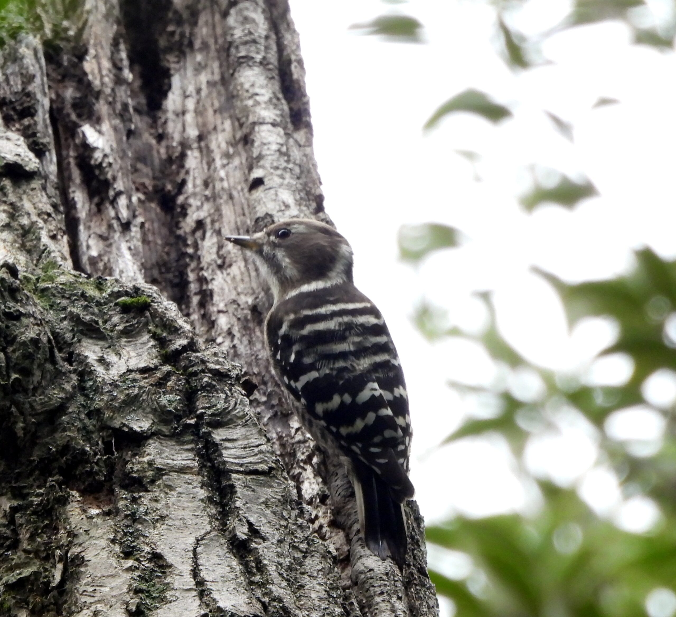 その後、エナガ、メジロ、シジュウカラ、コゲラの混群とヤマガラに会えたけど、枝葉に隠れてほとんど写真は撮れずで、かろうじて撮れたコゲラさん