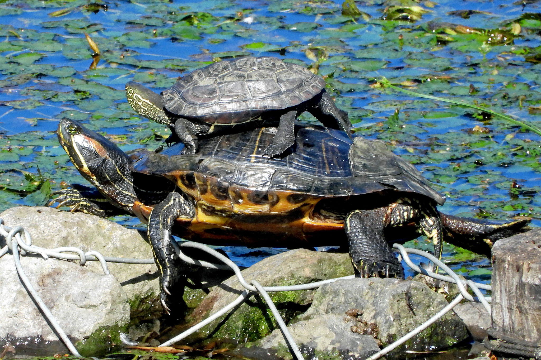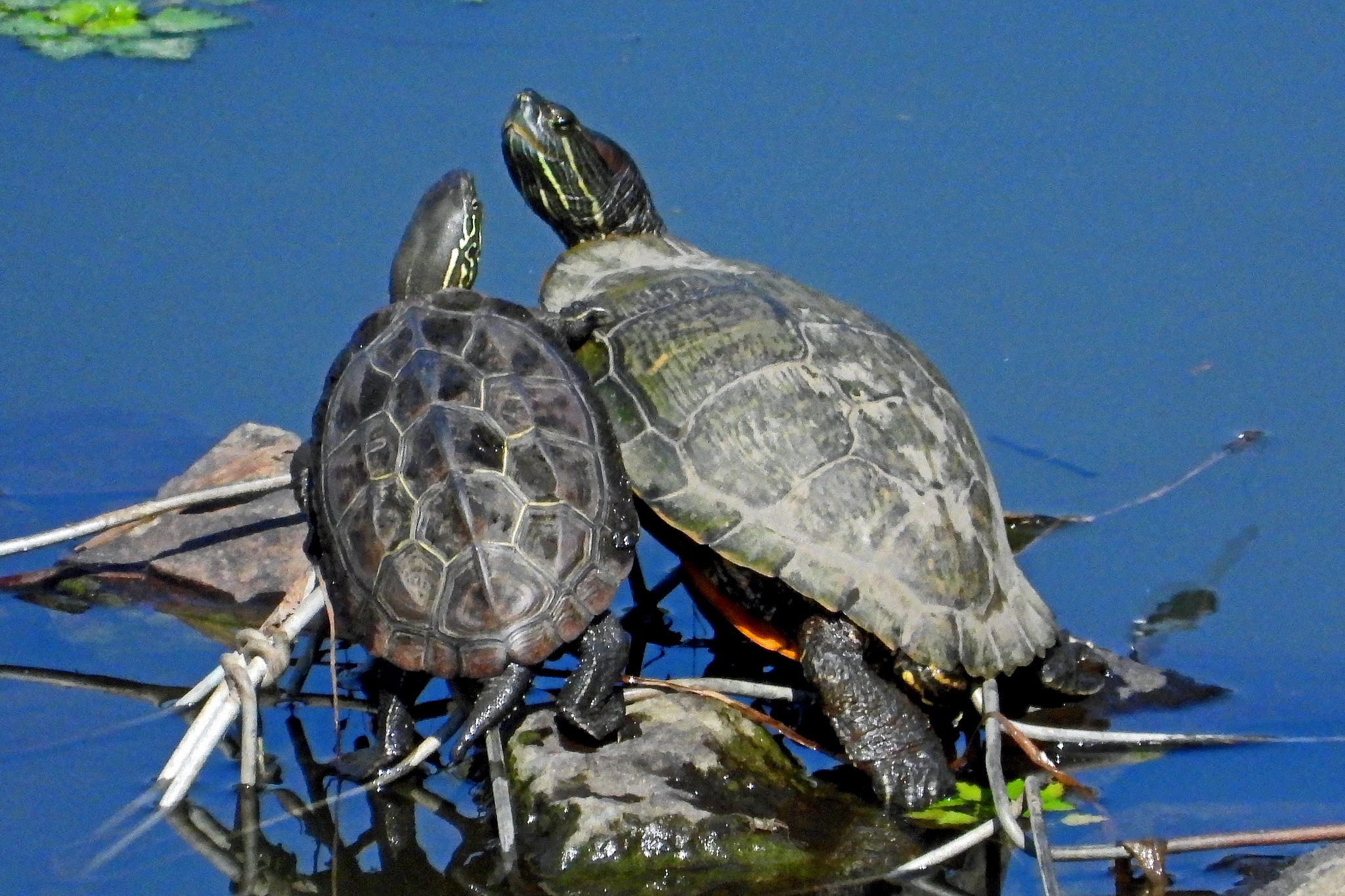 「クサガメ」が「ミシシッピアカミミガメ」の背中に乗っている光景を目にしいたことが有ります。