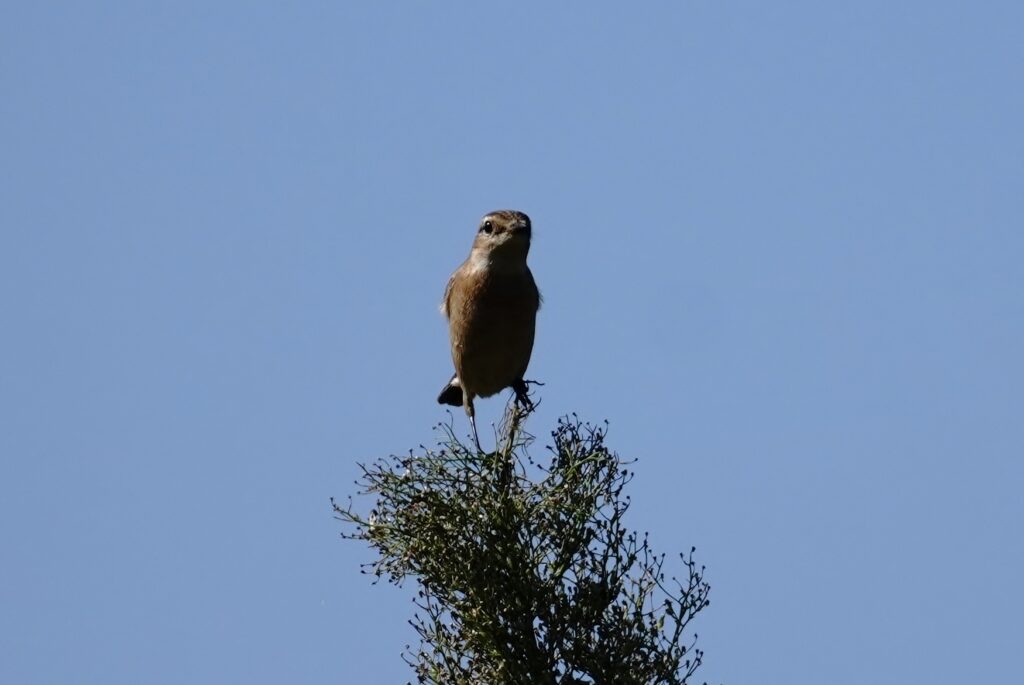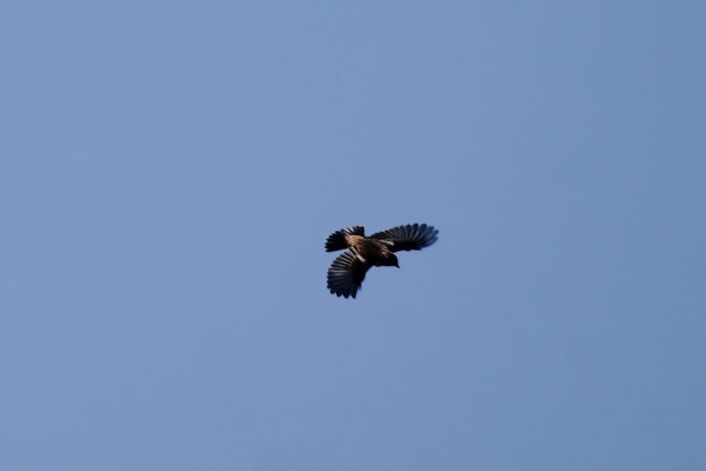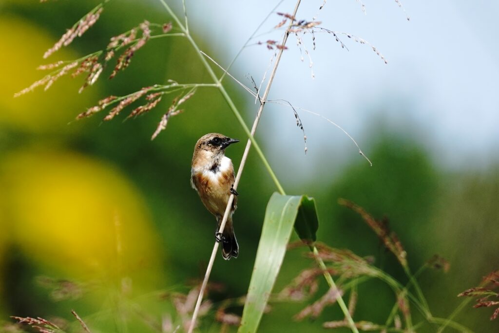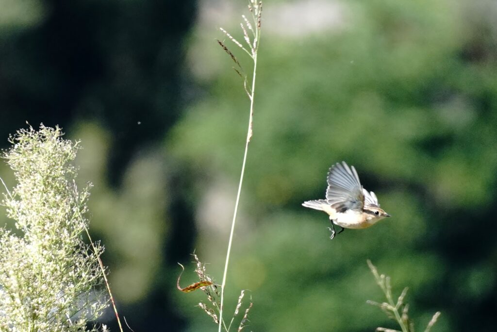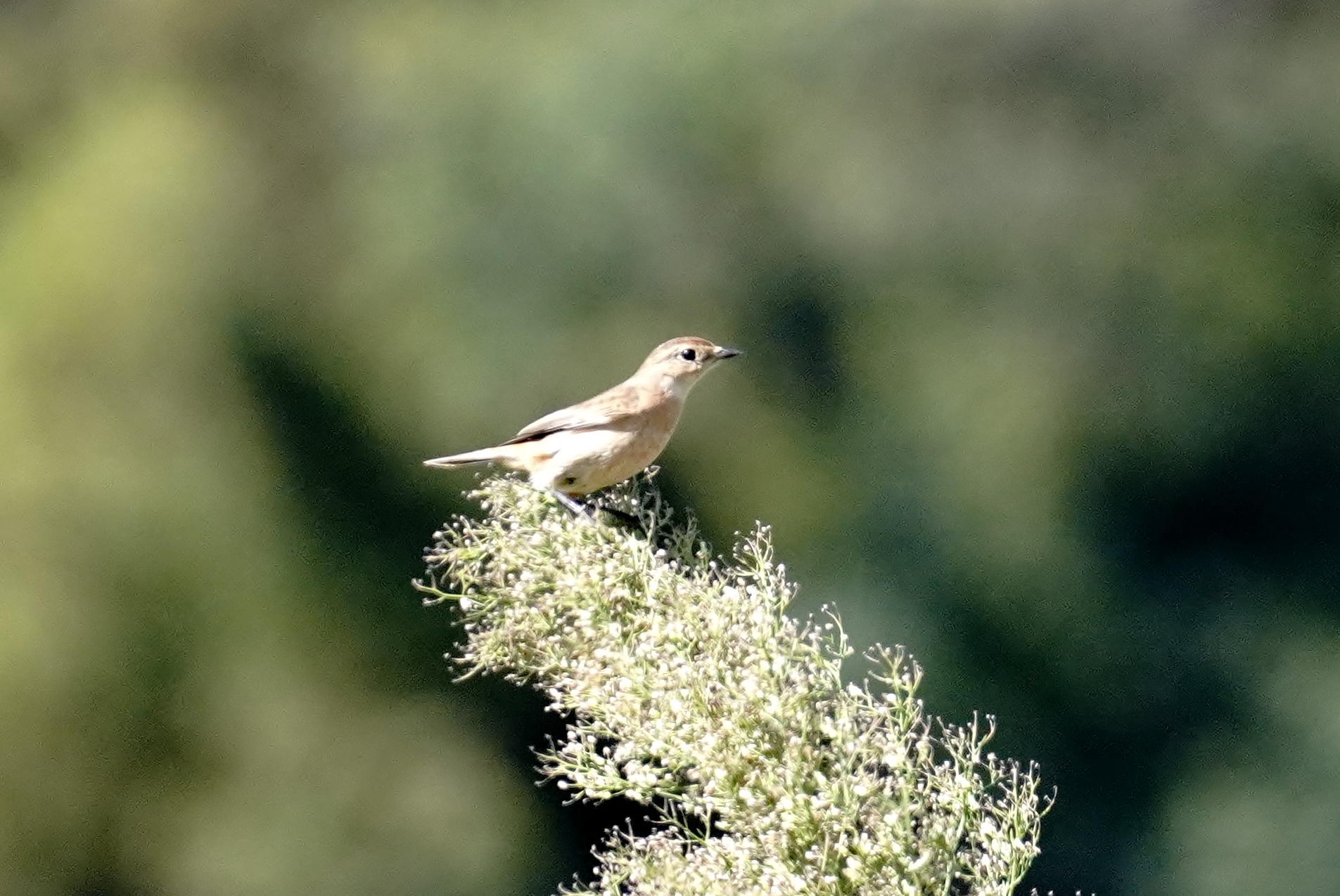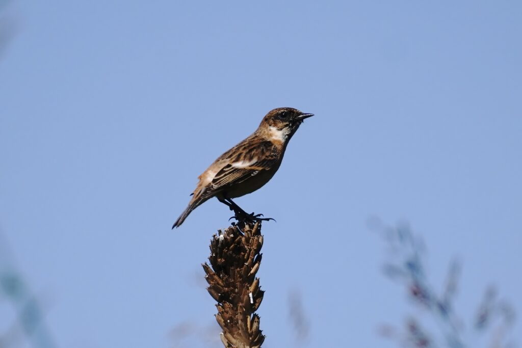 久しぶりの晴天に恵まれ、日中は気温も上昇。地元にはまだノビタキが滞在中で、黒い子にも会えました。草むらは様々な花が咲き、蝶たちが忙しそう。