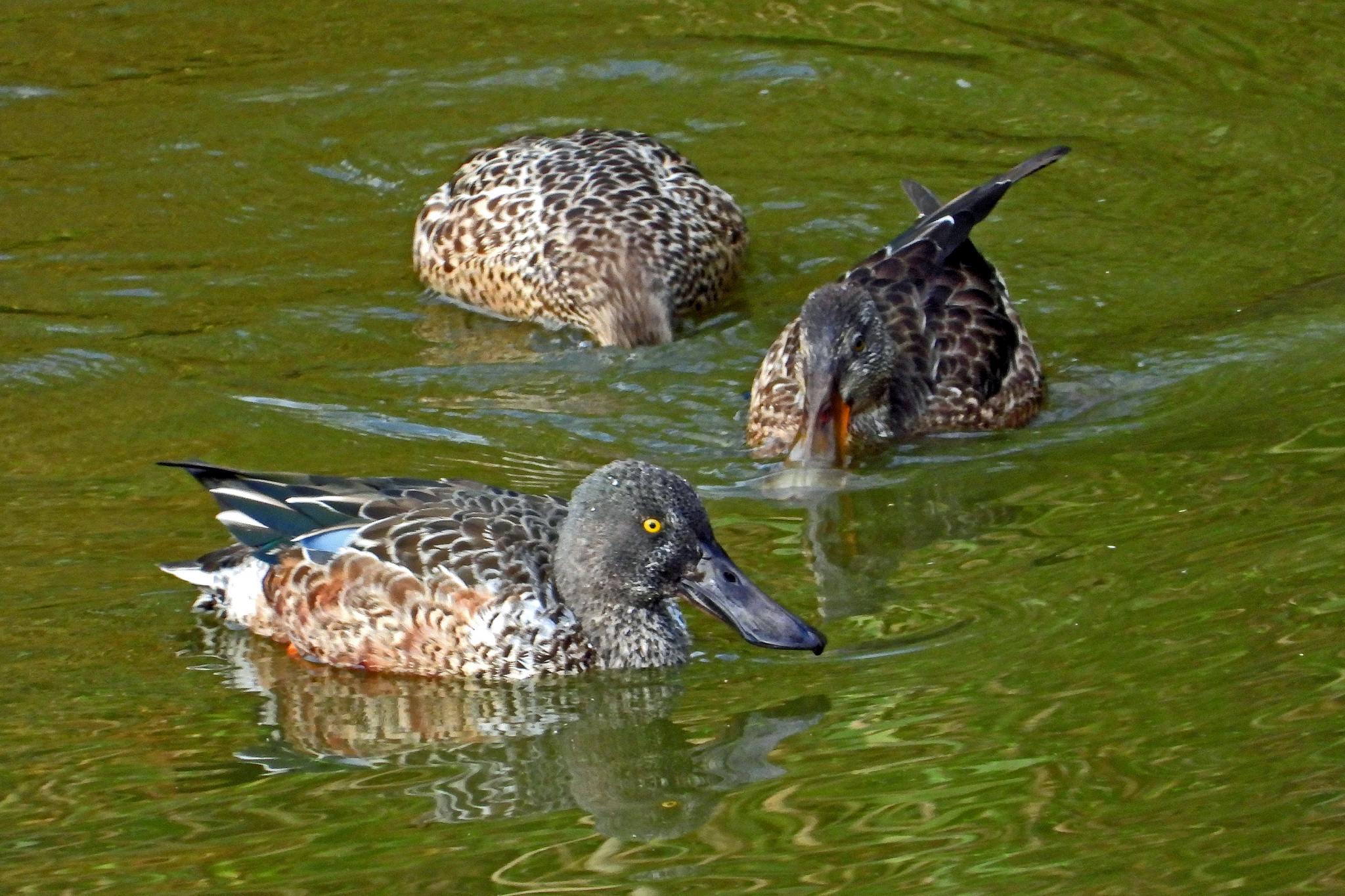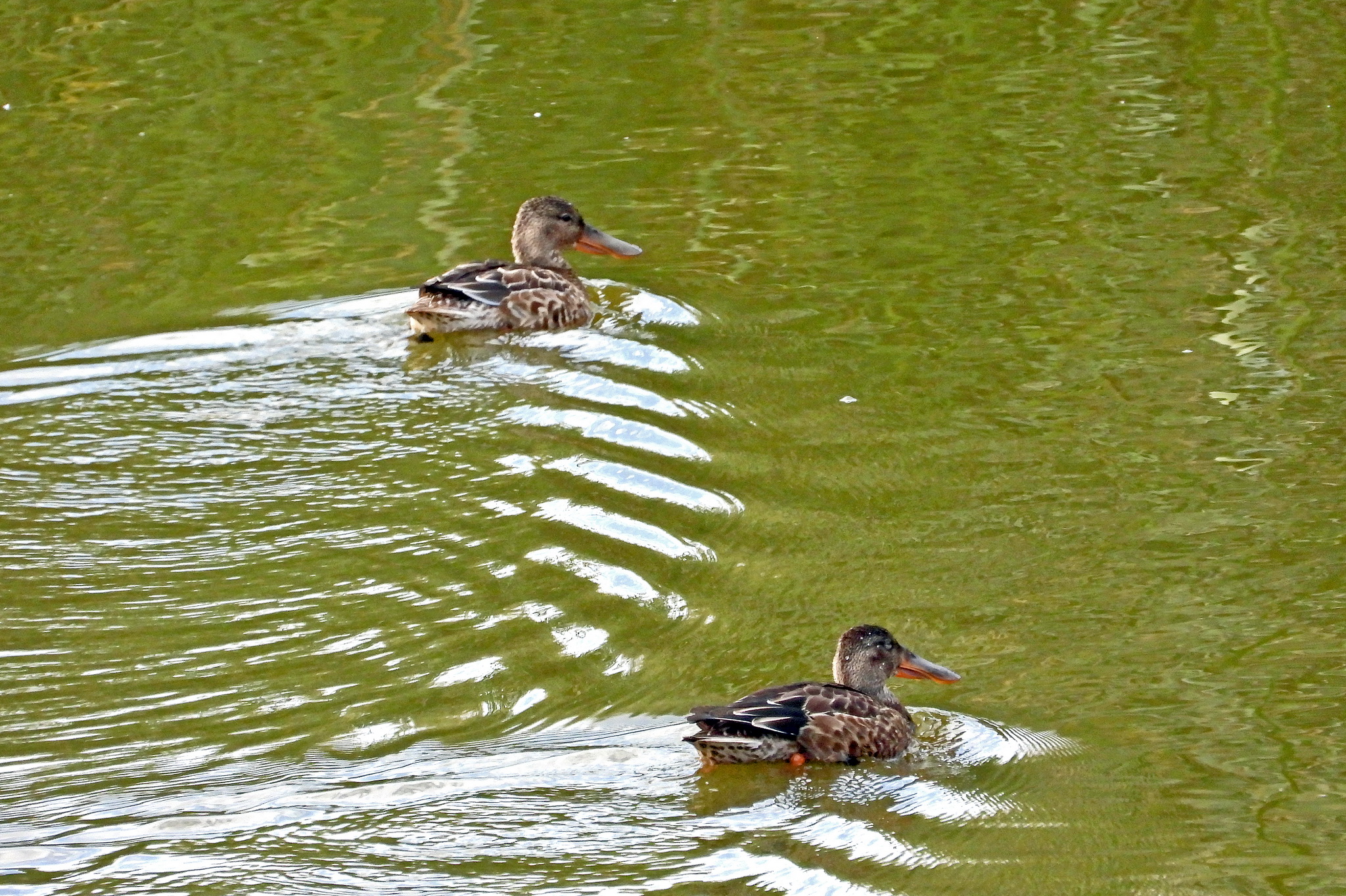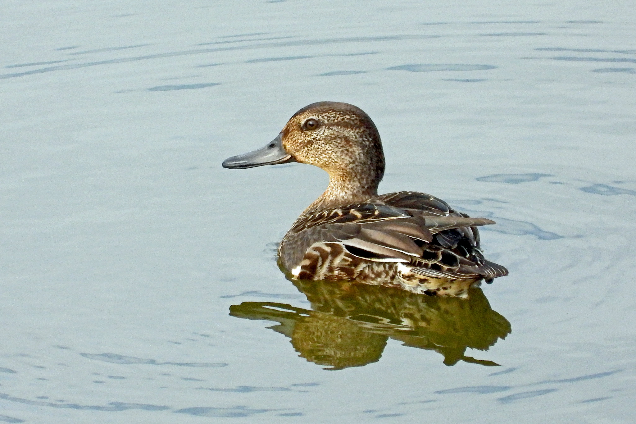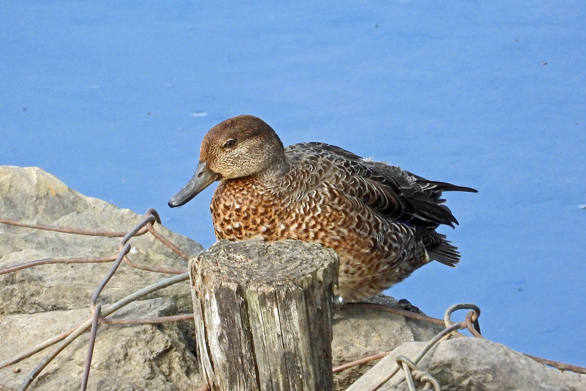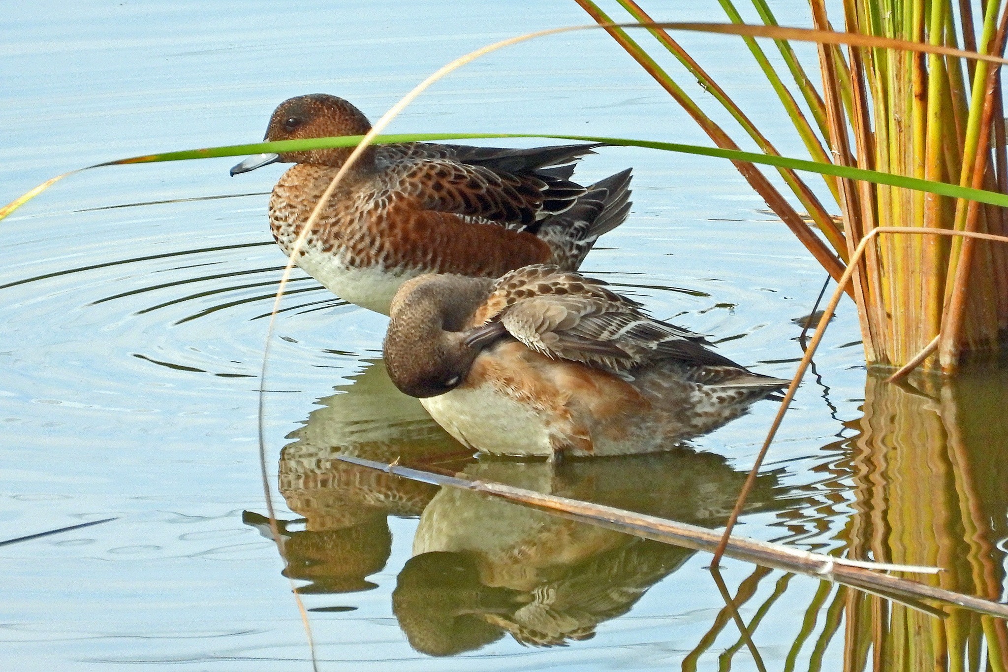 「コガモ」の向こうで、「タシギ」が休んでます。