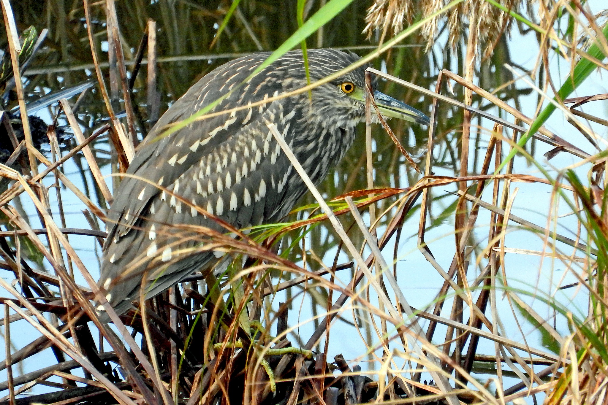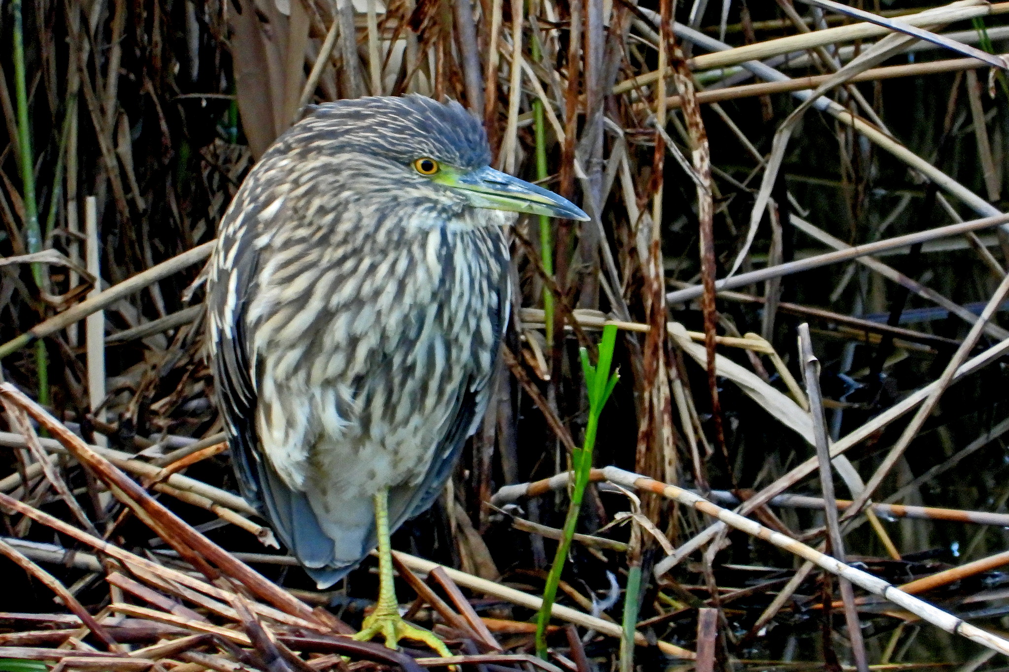 おっ、「ゴイサギ」の幼鳥「ホシゴイ」発見。