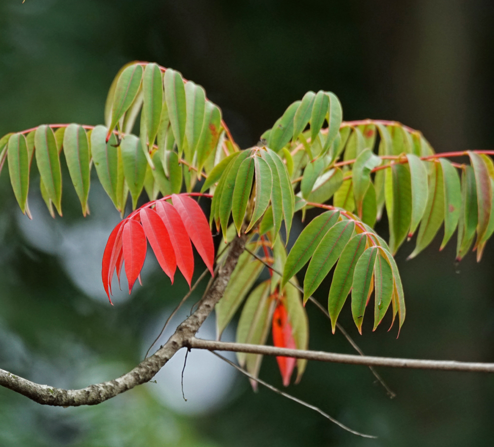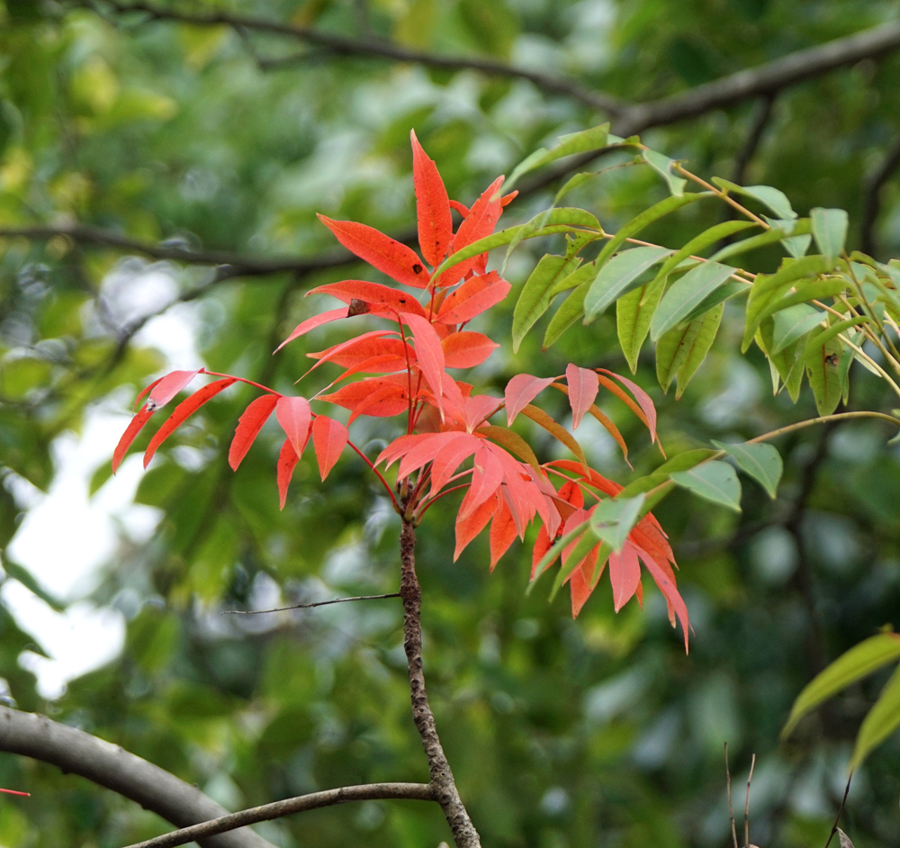 1枝だけ真っ赤になったり、1枝の中の1葉だけ真っ赤になったり。