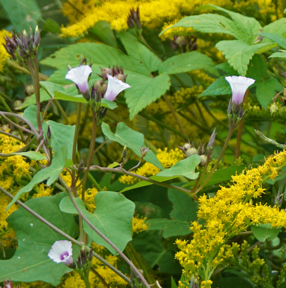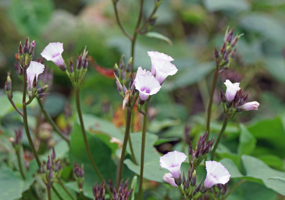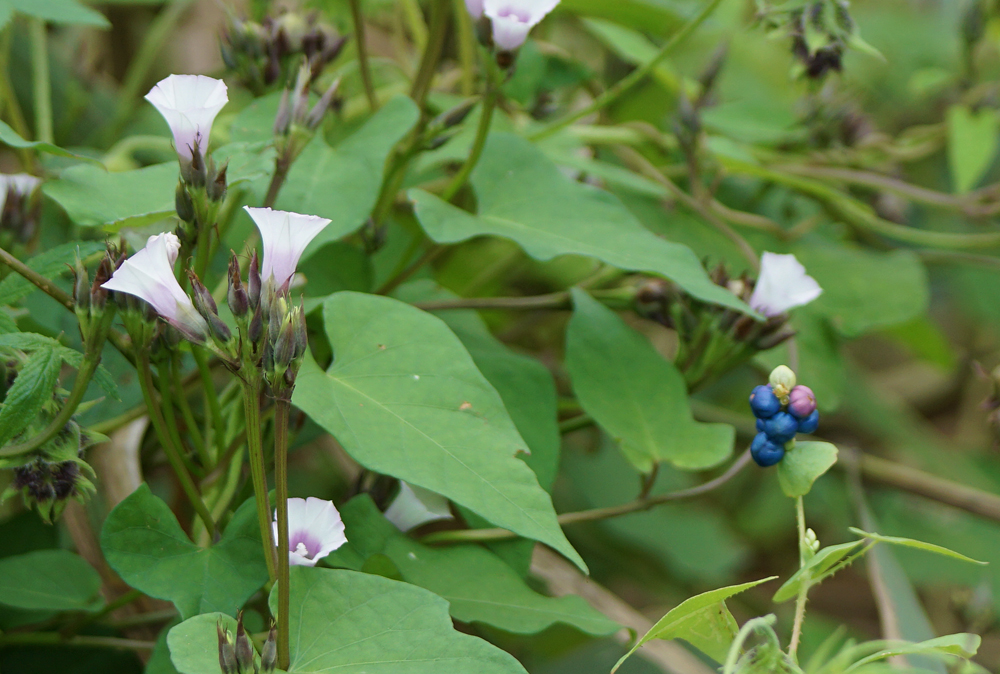 ホシアサガオがあちこちに広がって、たくさん、花盛りになっています。 こんなに見るのは久しぶりです。