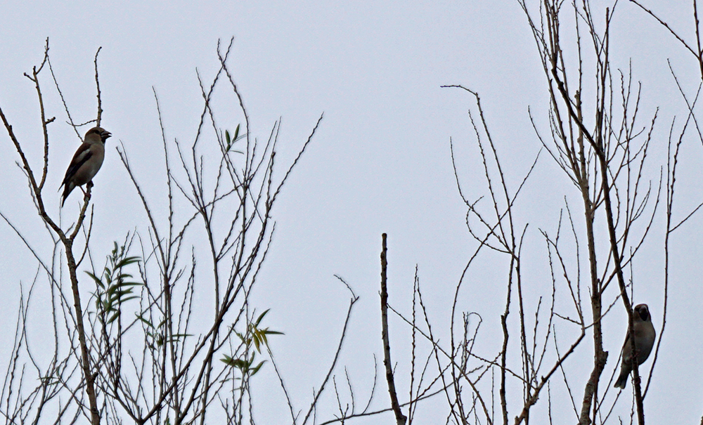 パラパラと小群の鳥が遠くの枝に入りました。 遠藤でシメを見てきたところだったので、