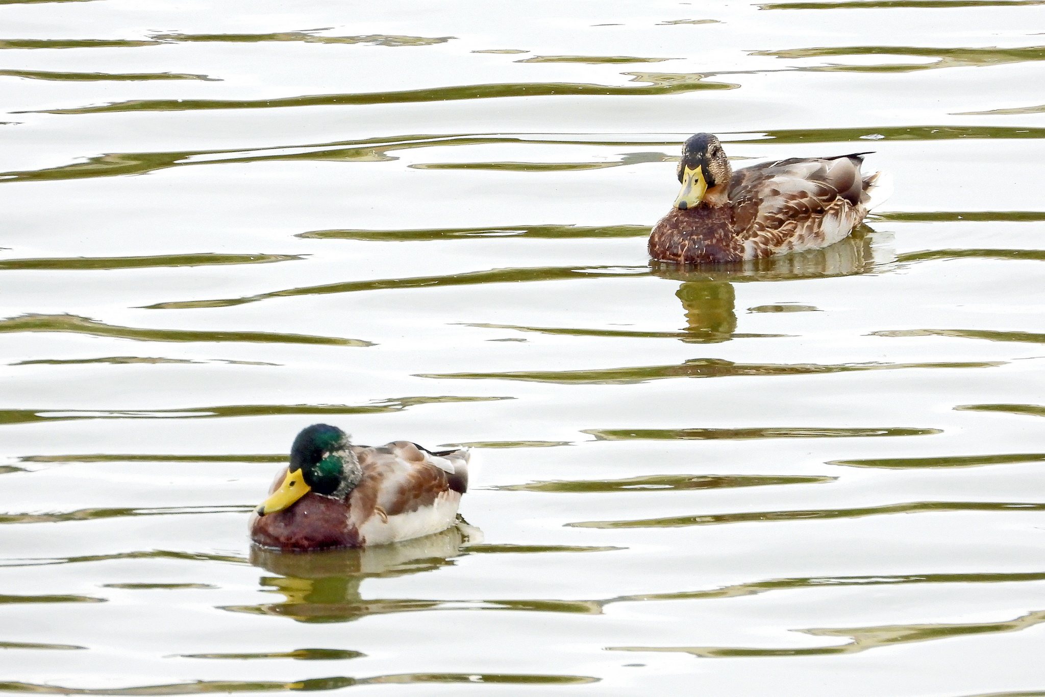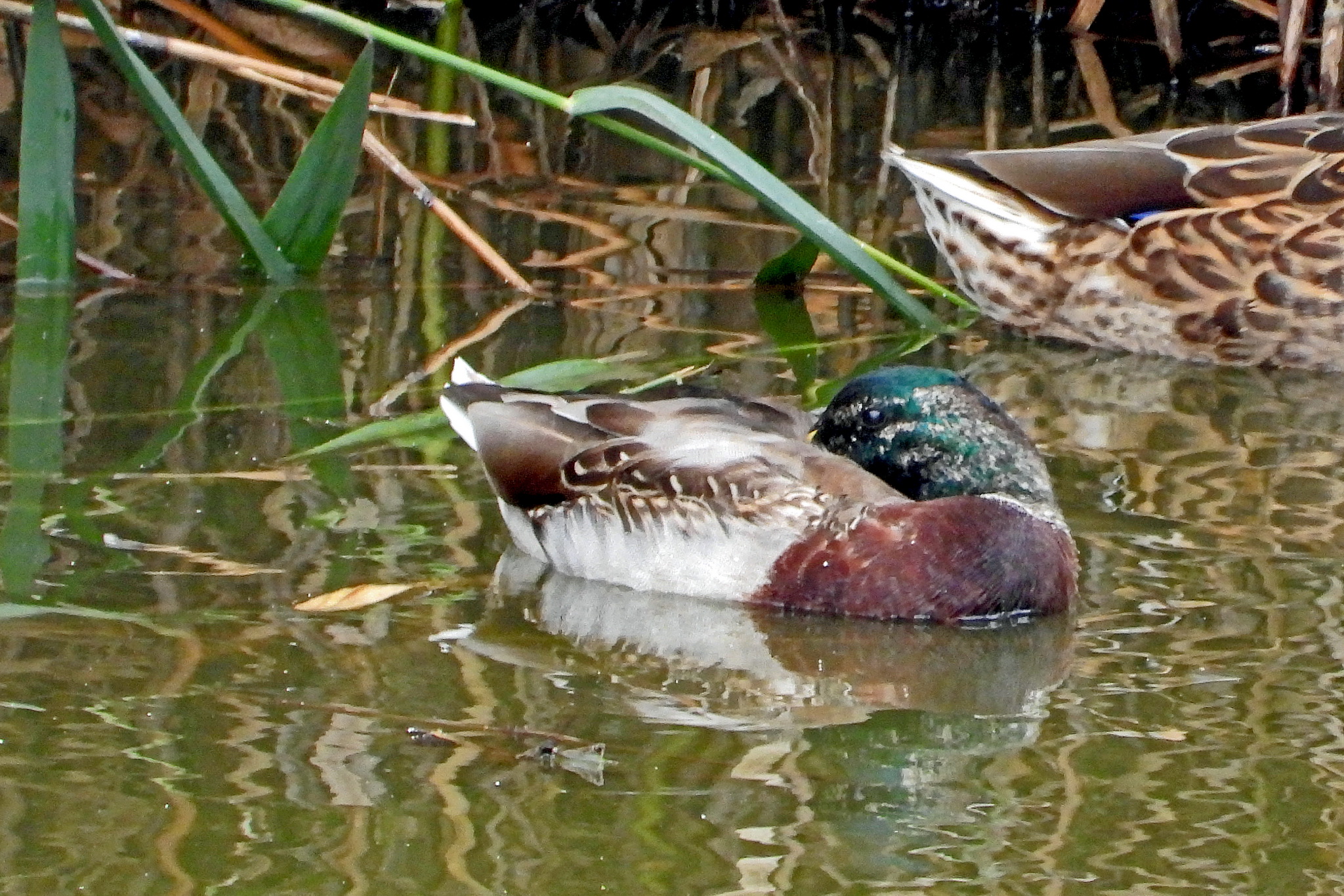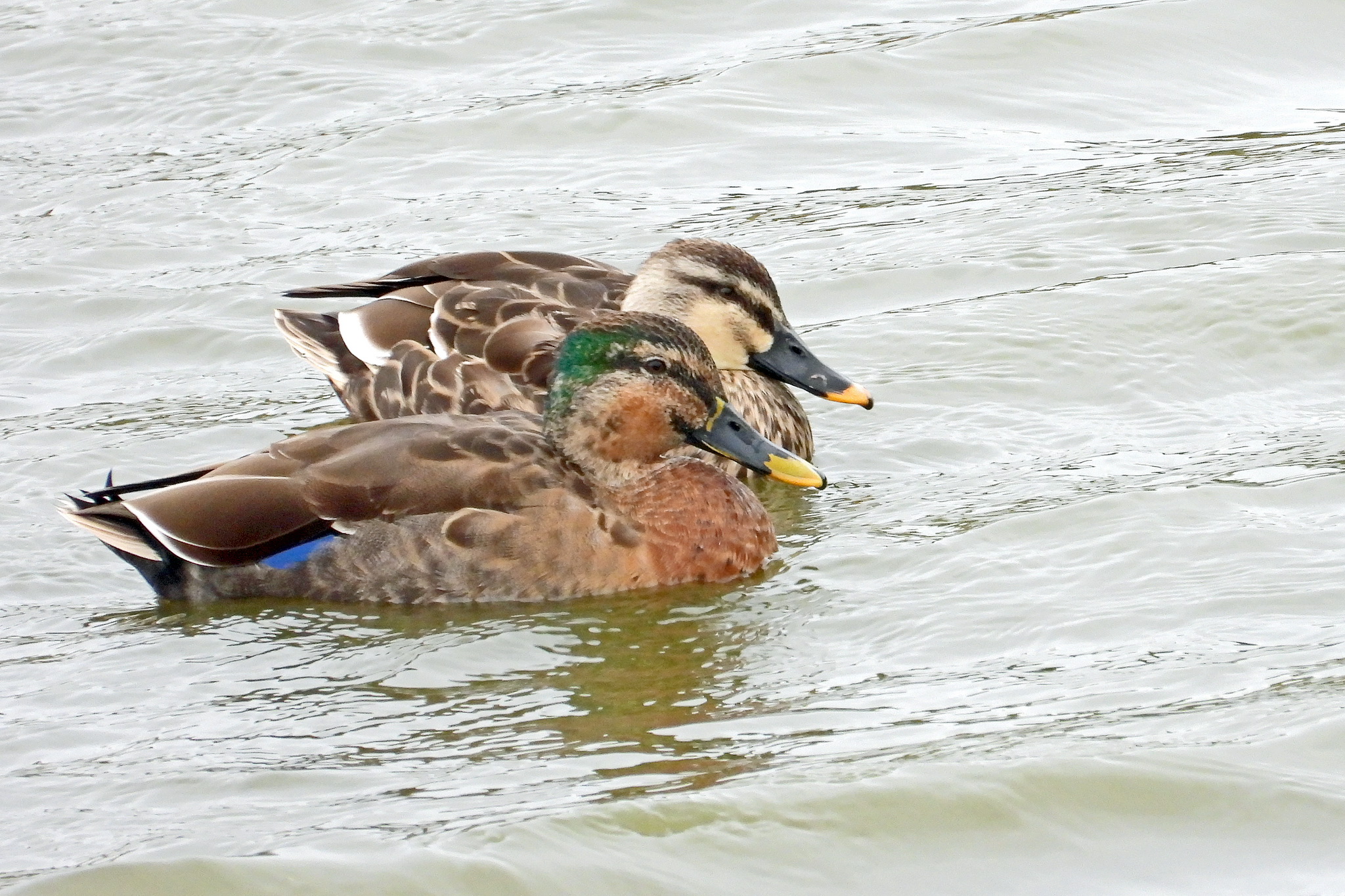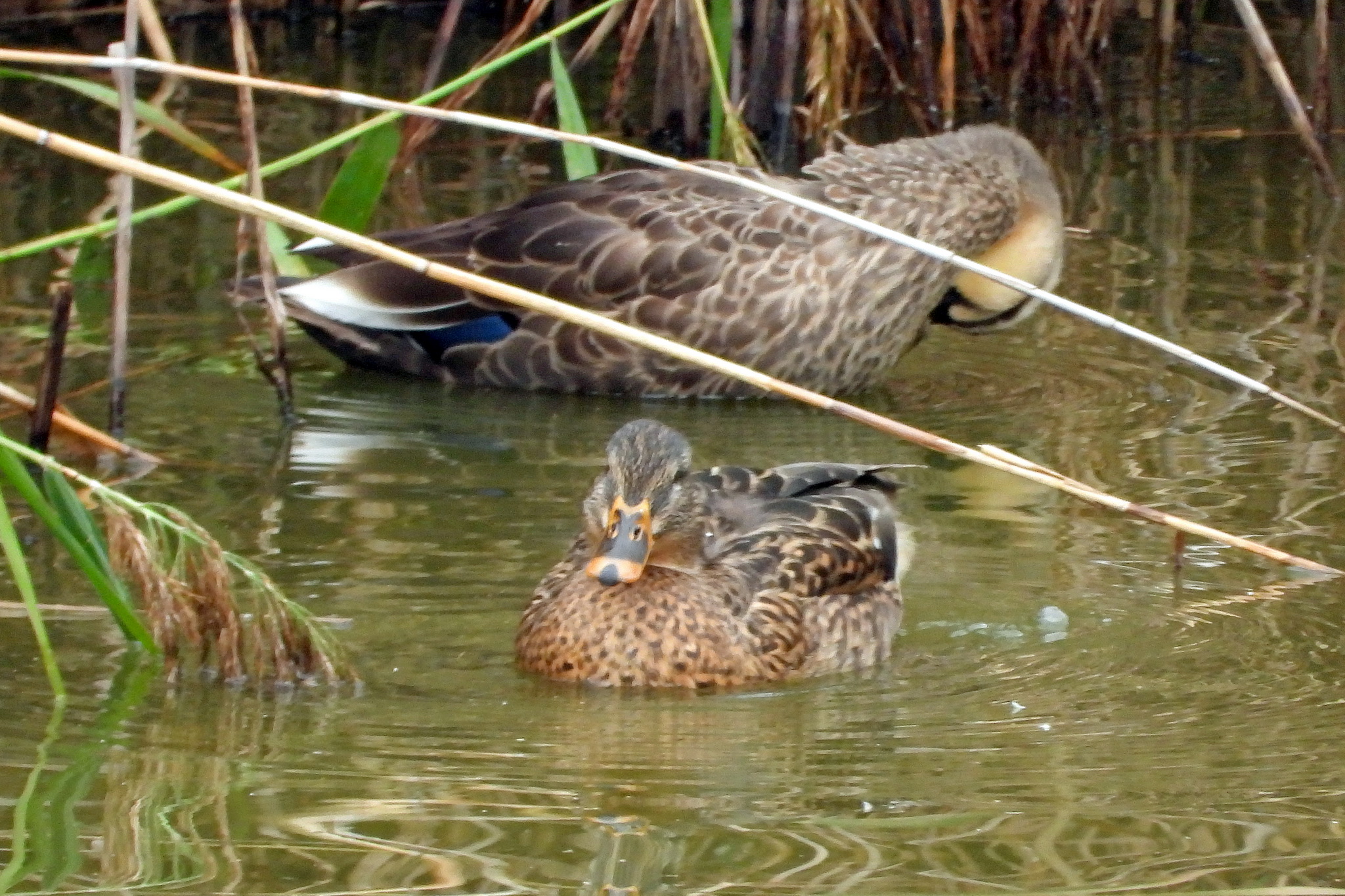 あっ、これは「マガモ」と「カルガモ」の交雑種のようですね。