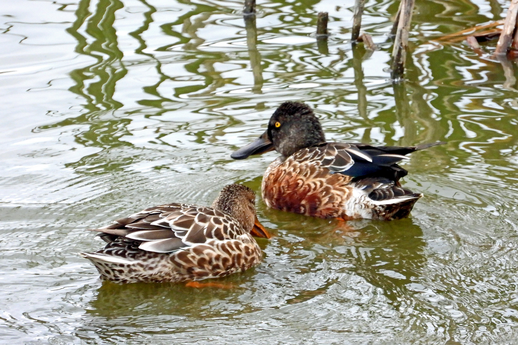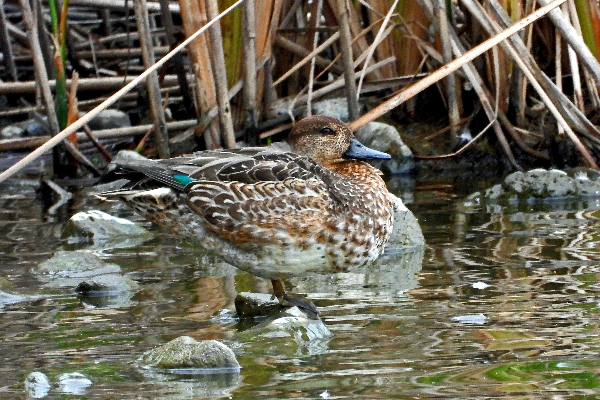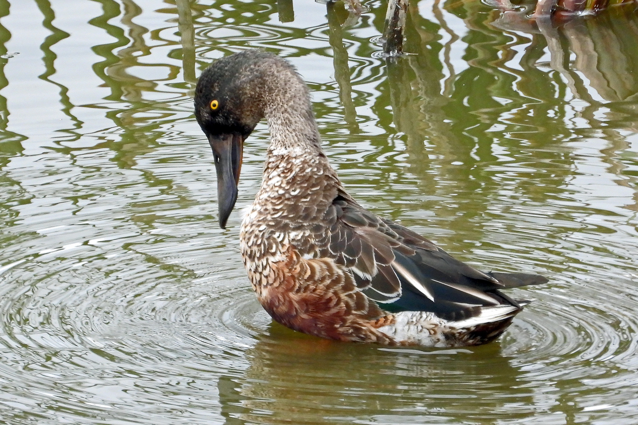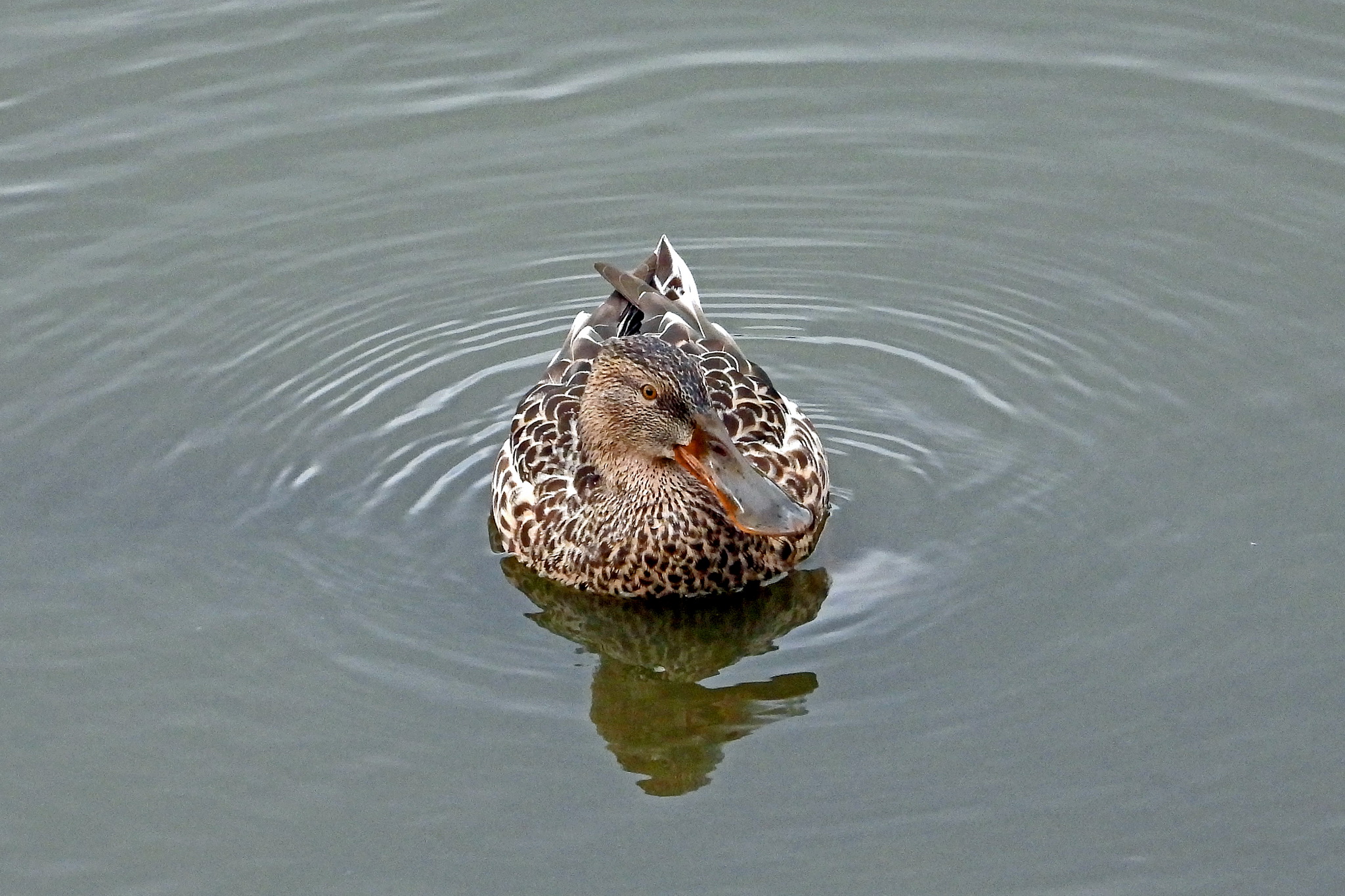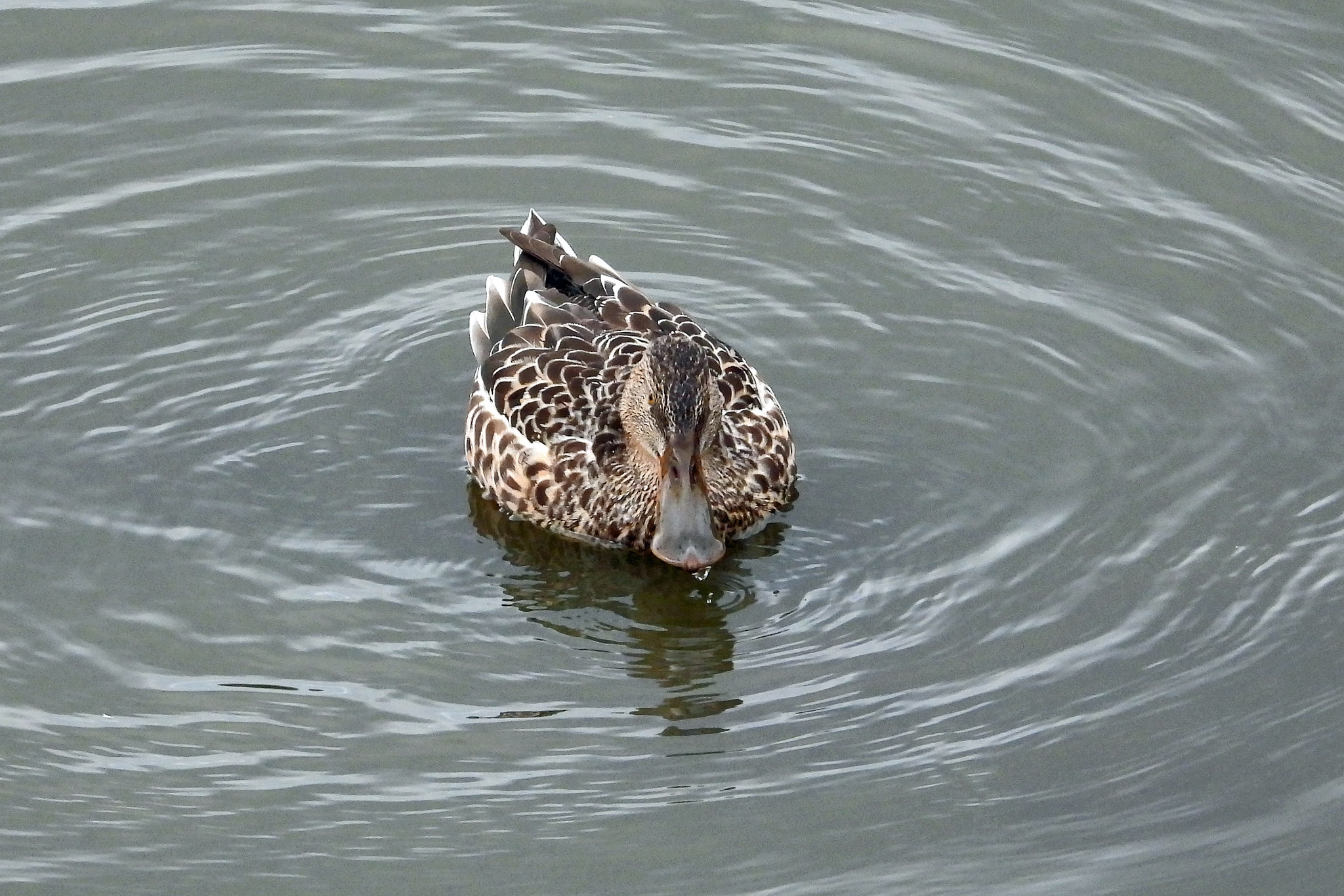 遊水地を見ると、下に「ハシビロガモ」のメスが居ました。
