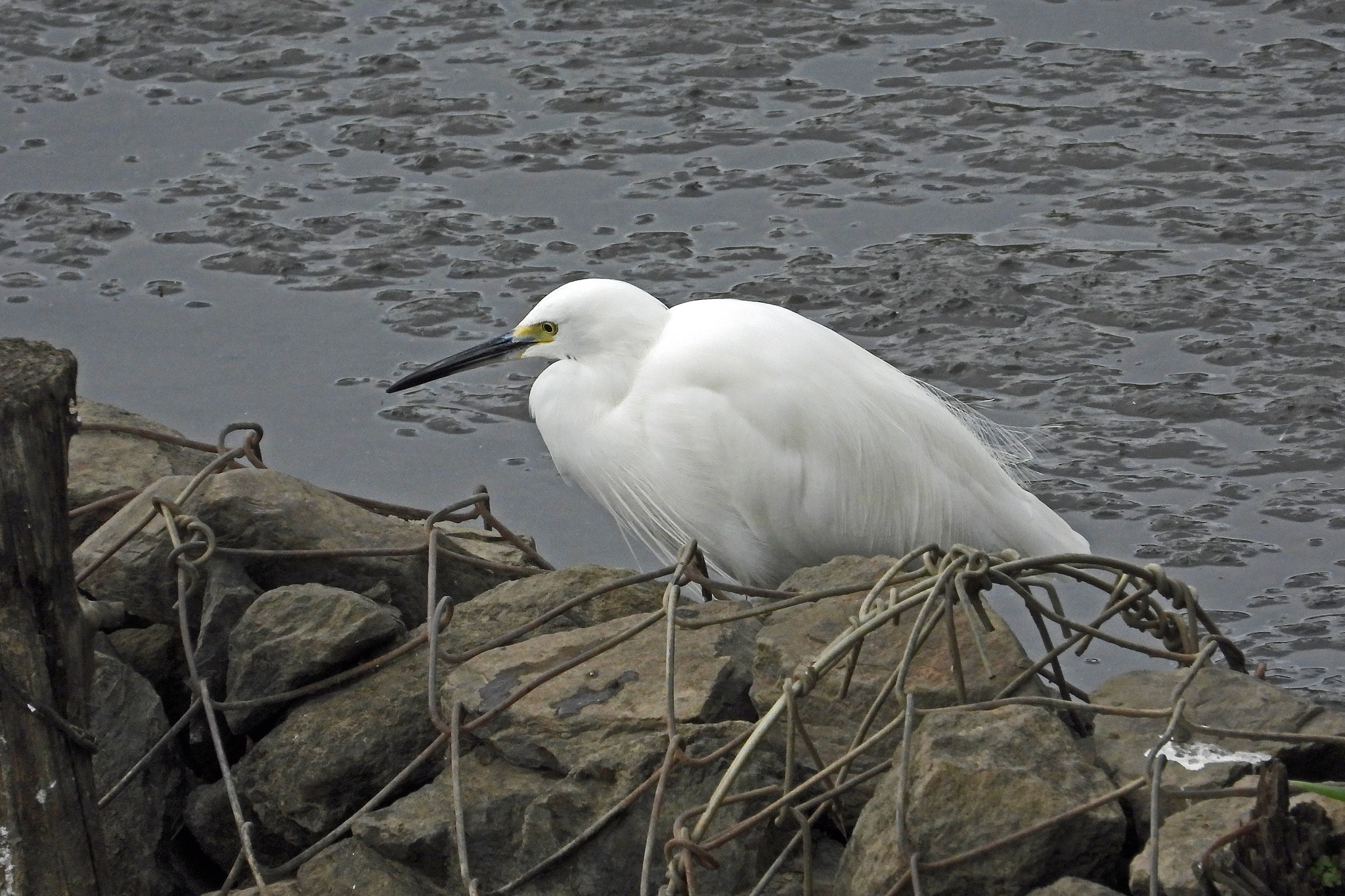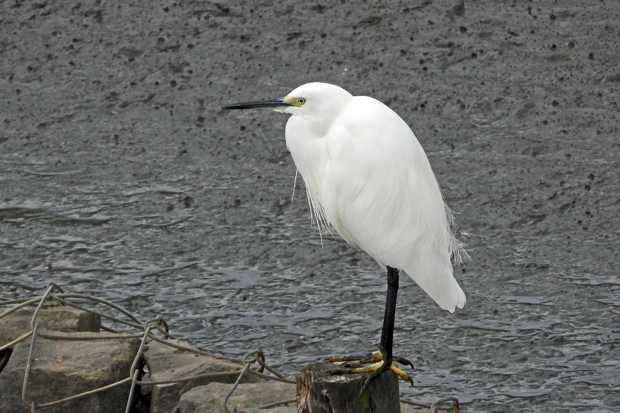石組みの向こうを「コサギ」がのんびり歩いてます。