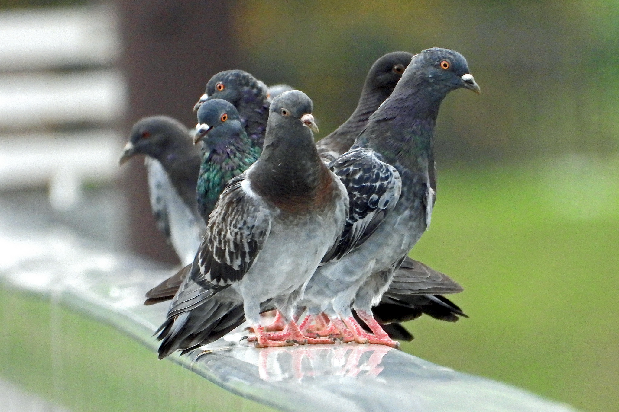 橋の手すりを見ると、「ドバト」が一箇所にたくさいます。