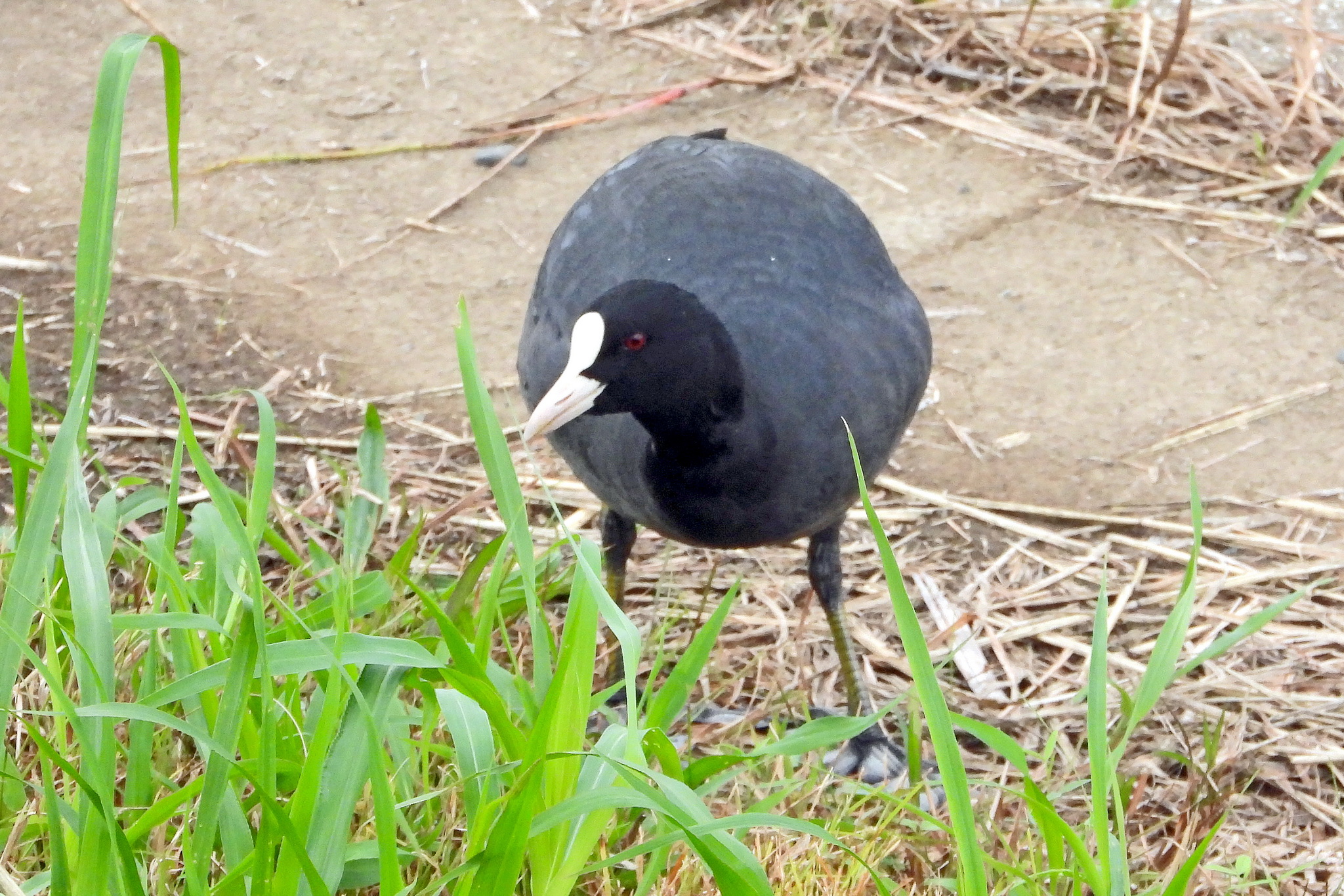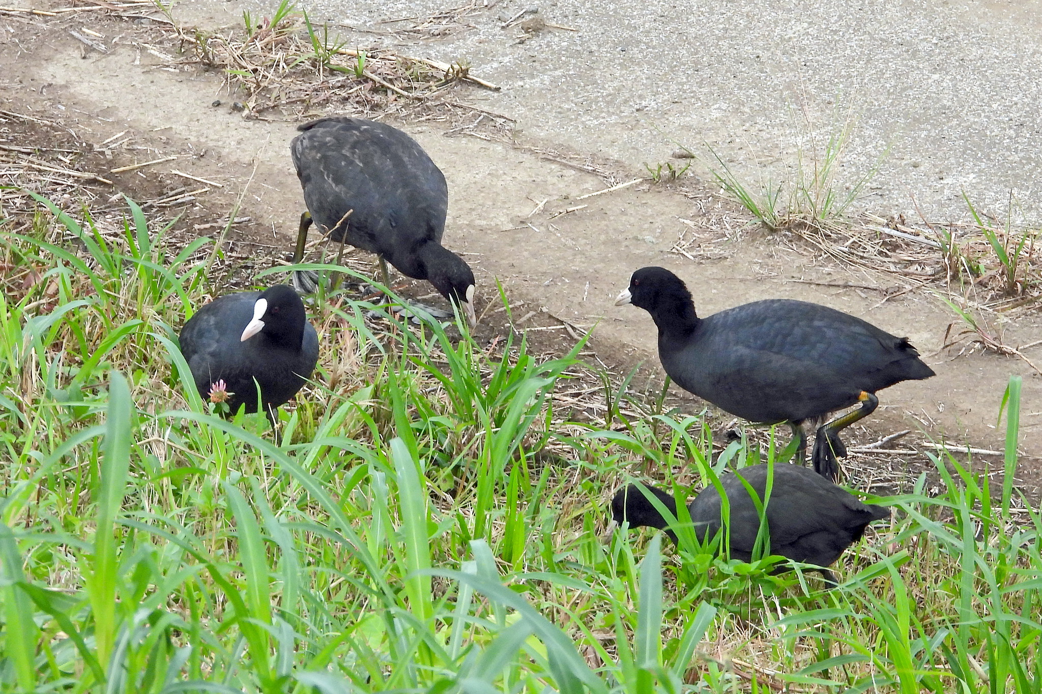 土手で「オオバン」がお食事中でした。