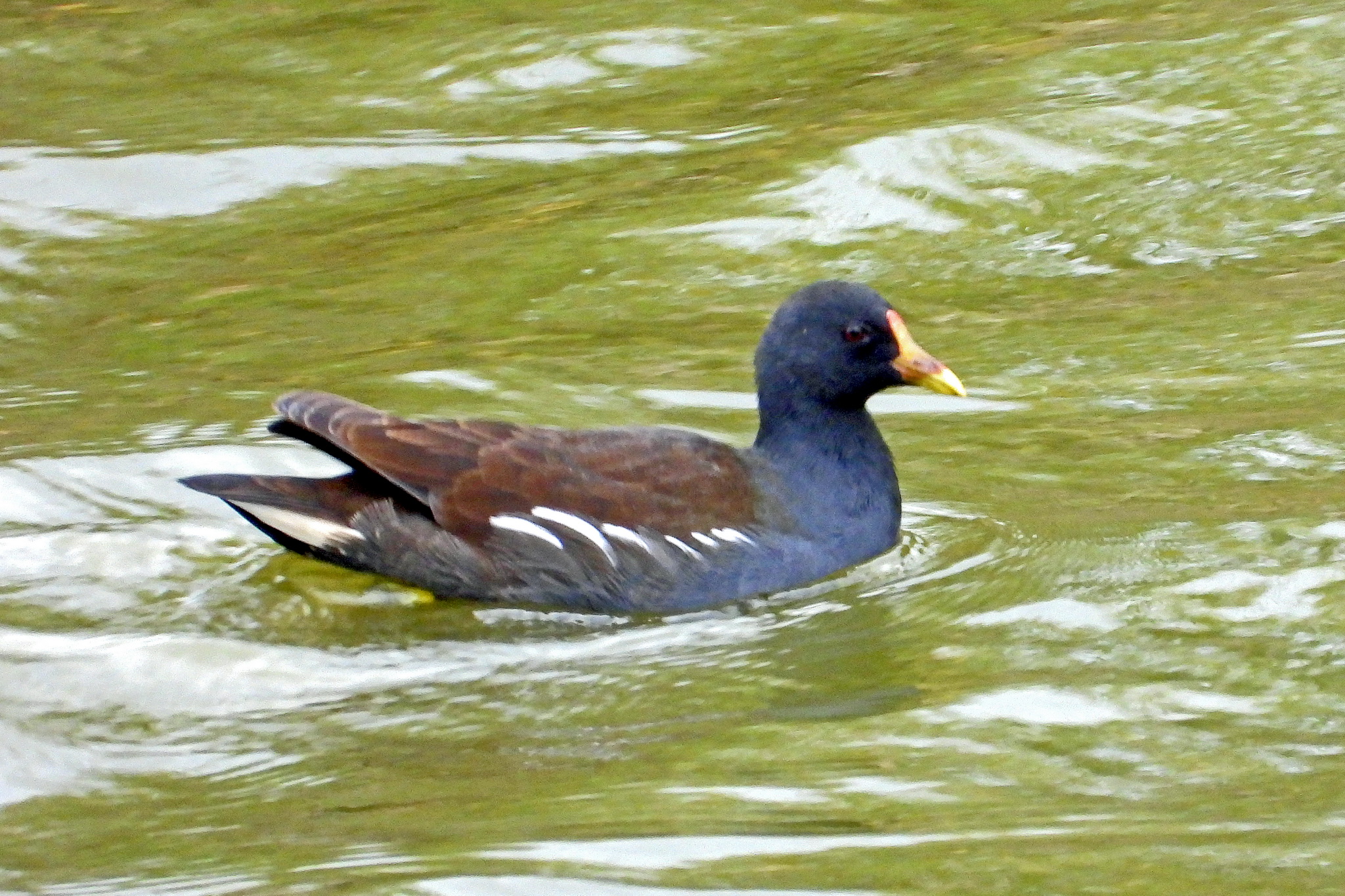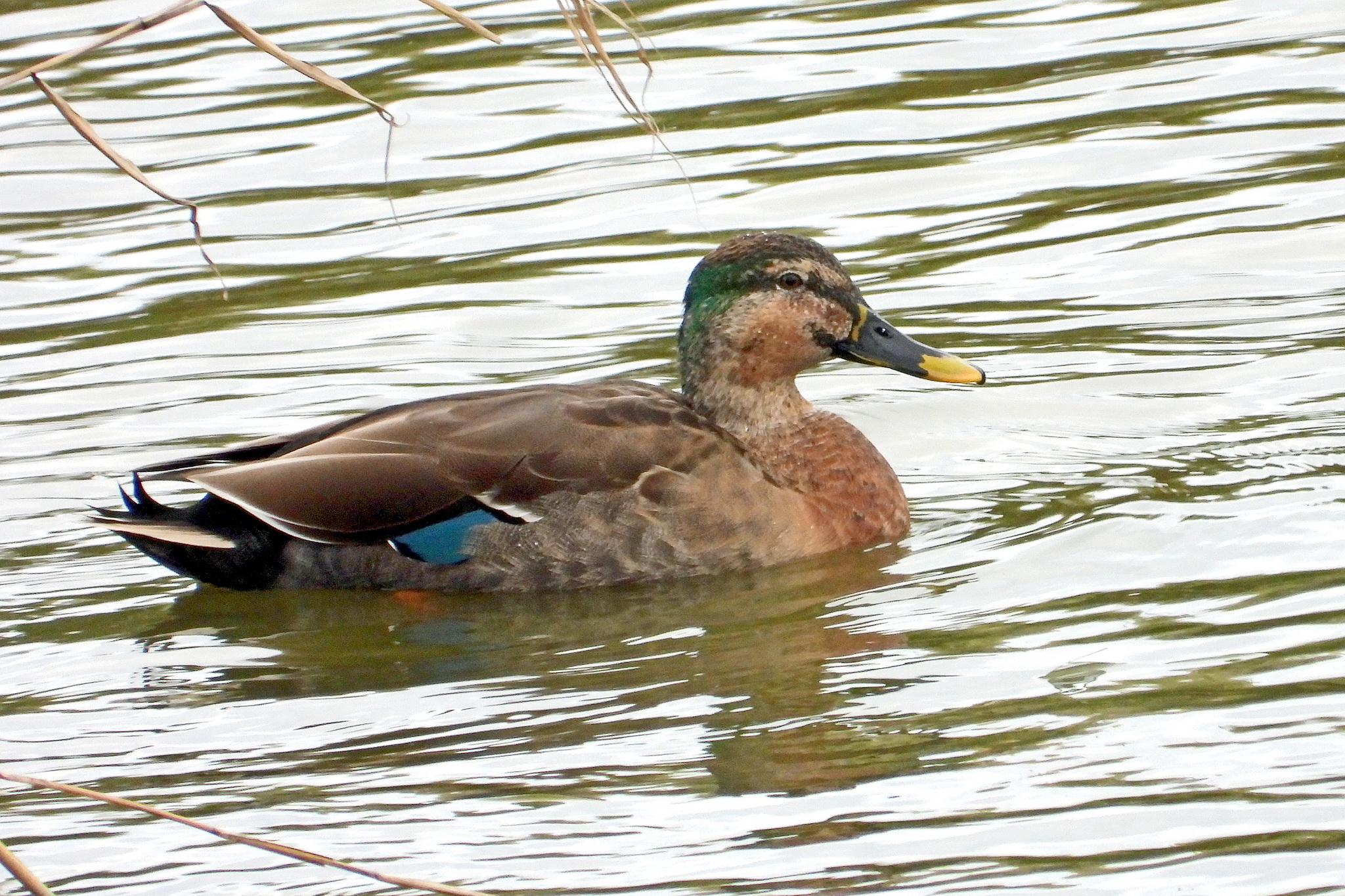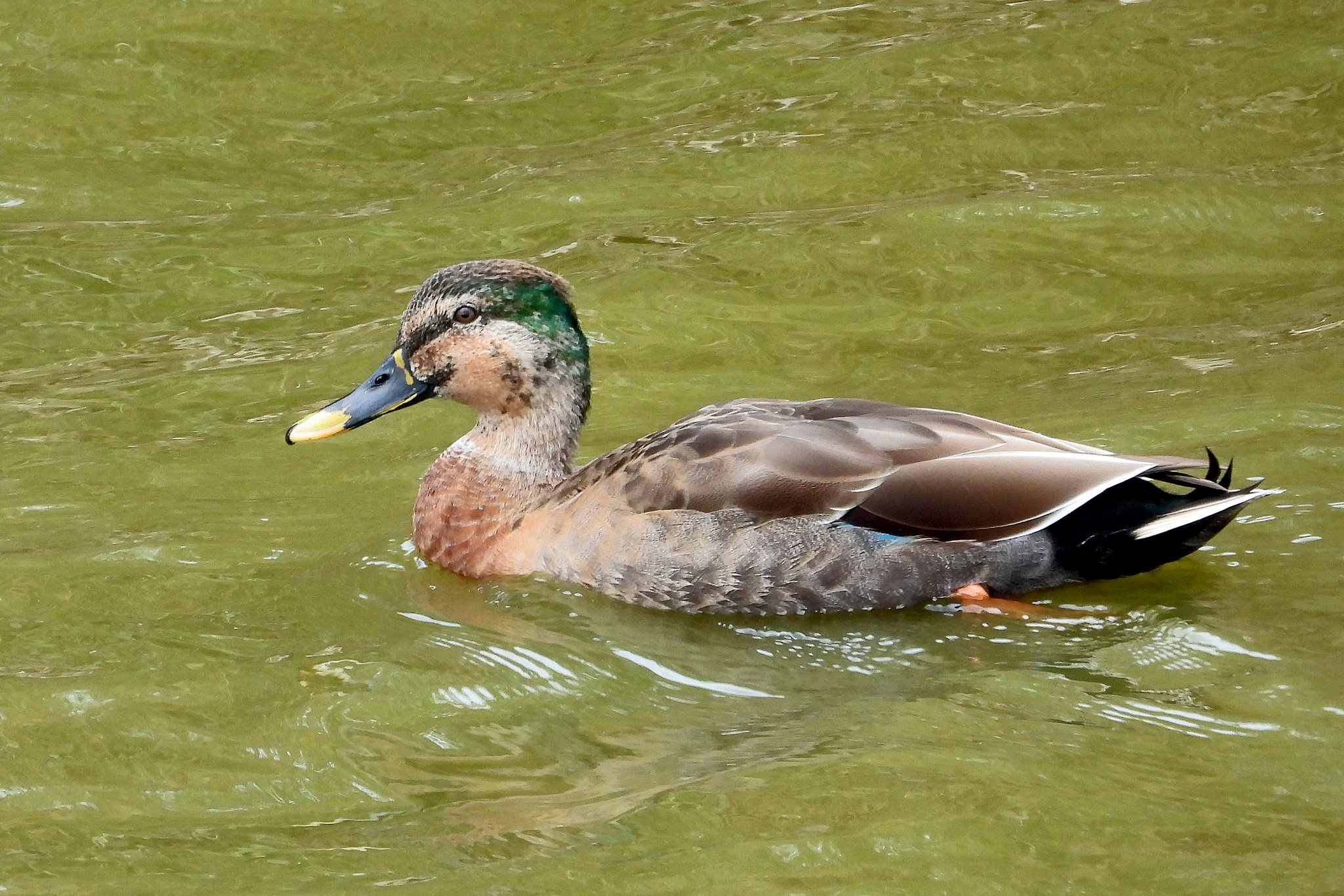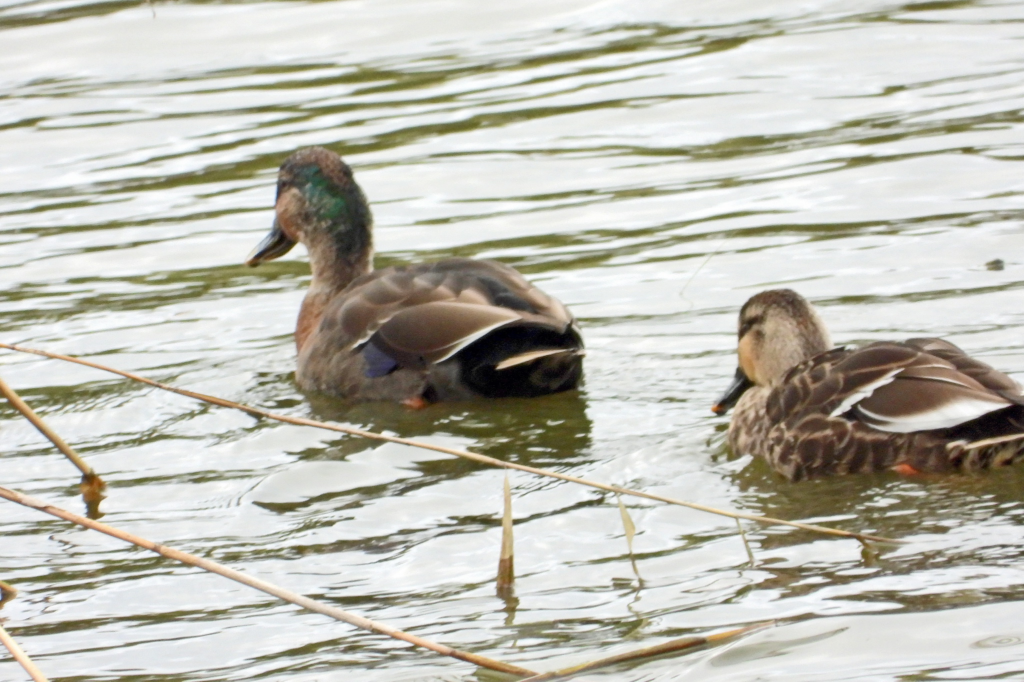 おっ、「カルガモ」と「マガモ」の交雑種が泳いで来ました。