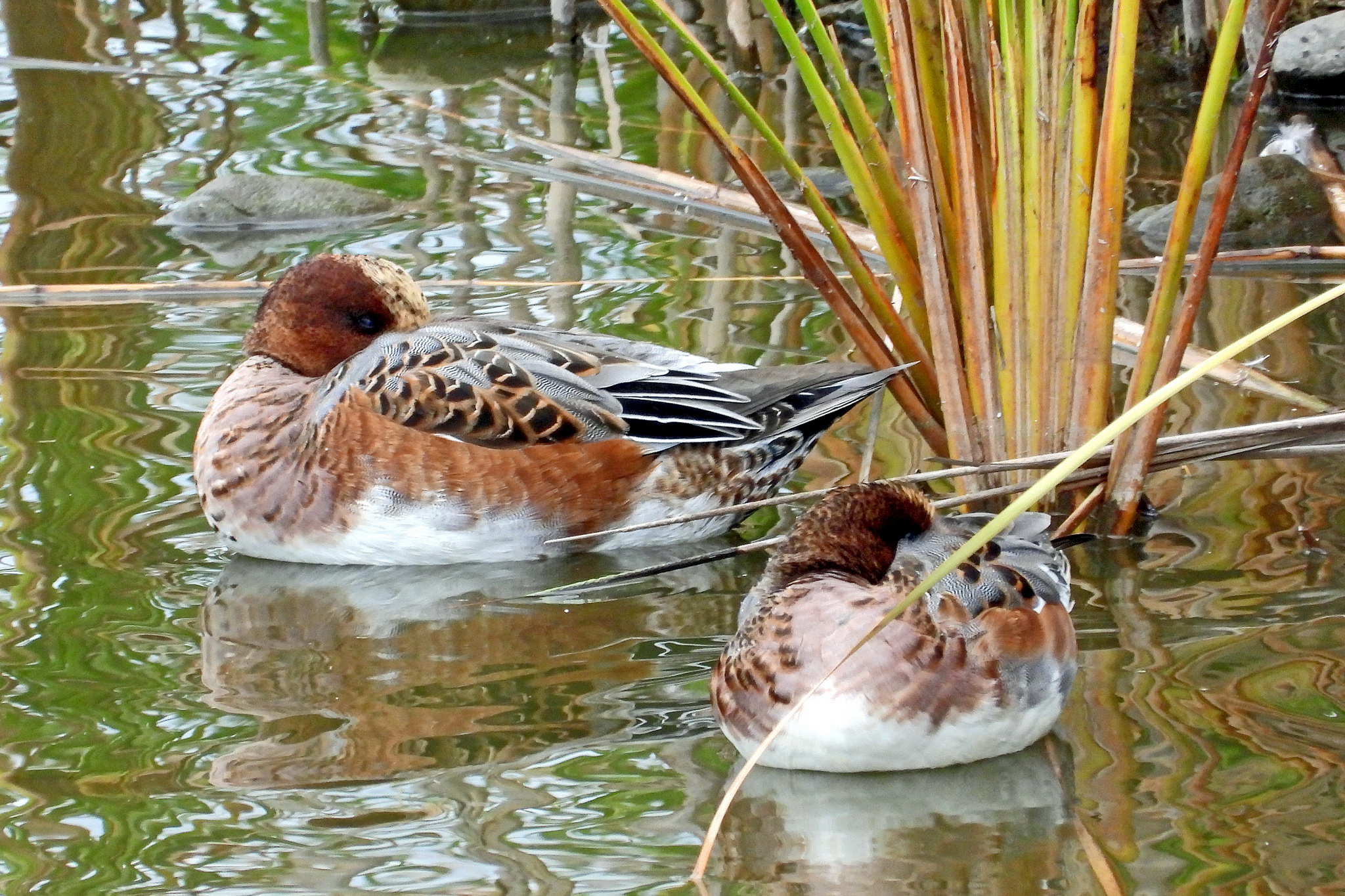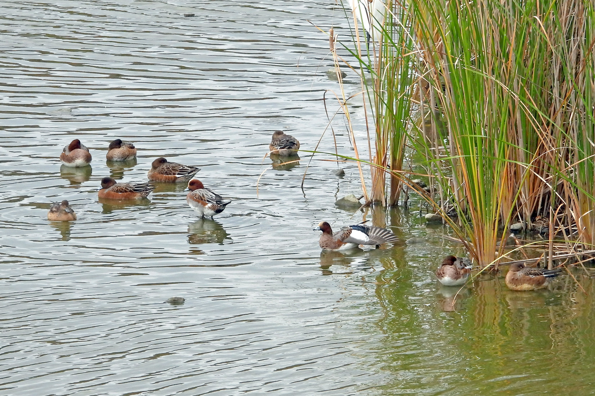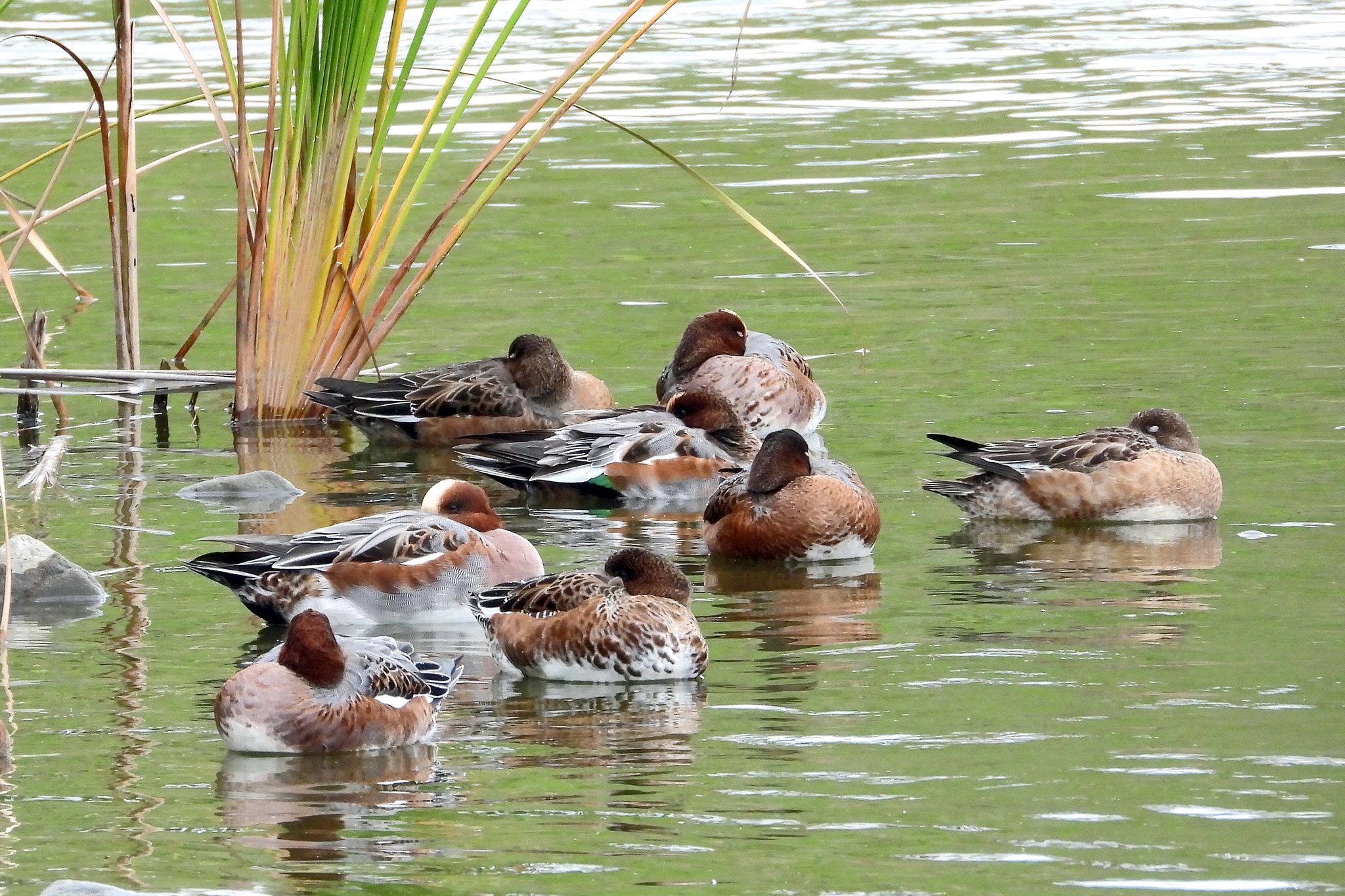 あっ、葦原島の脇に「ヒドリガモ」の団体が居るじゃないですか。