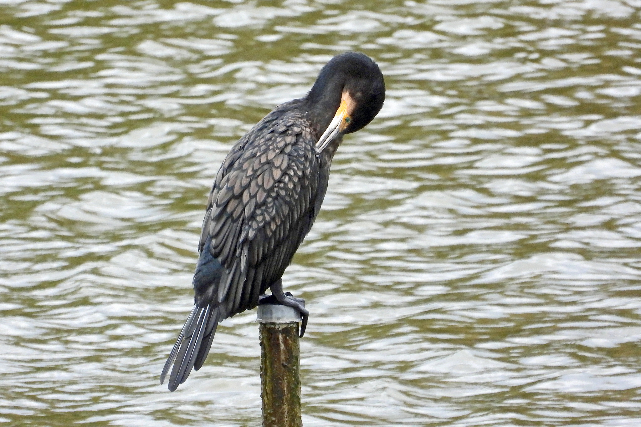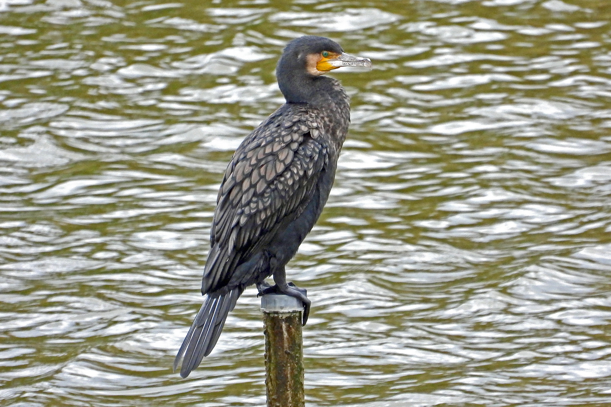 あっ、久しぶりにポールの上に「カワウ」が居る。