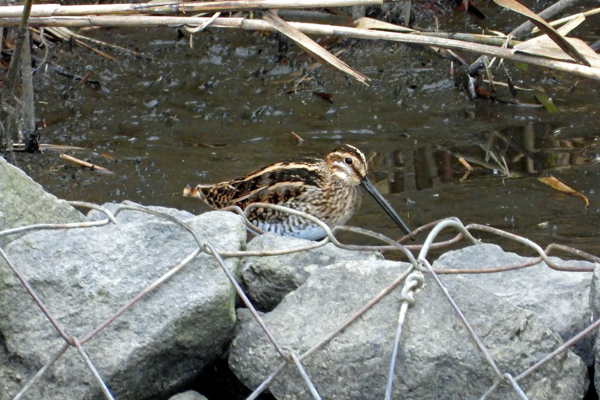 石組みの向こうに「タシギ」が現れました。