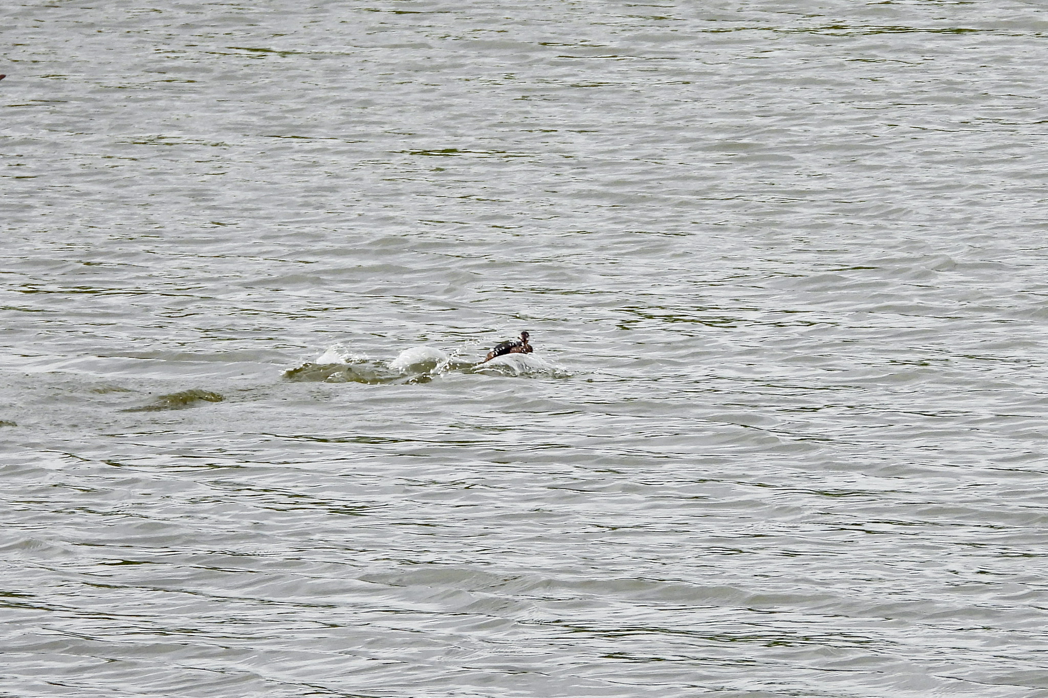 あっ、「カイツブリ」が水面を走っていく。
