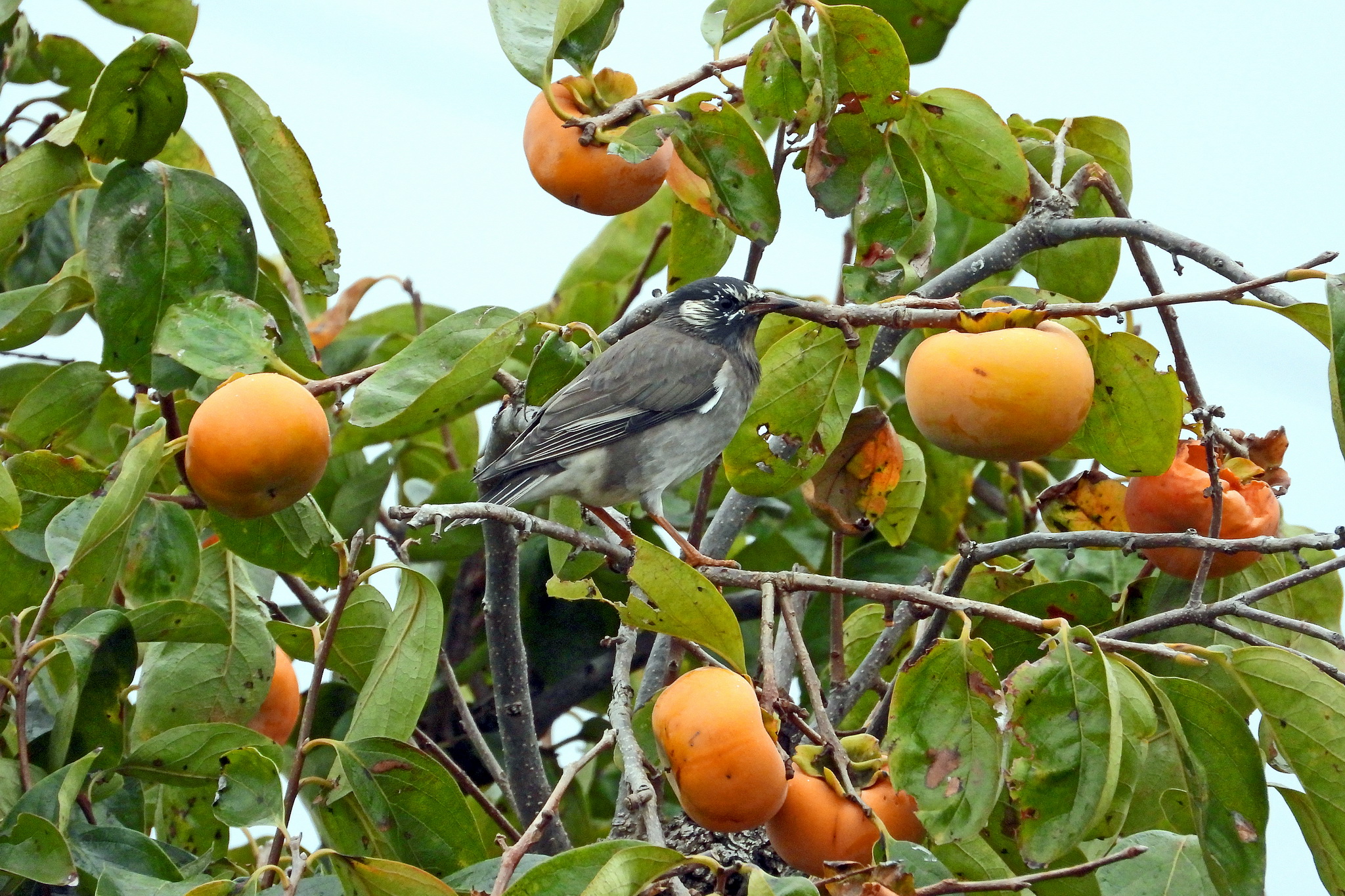 向かいの民家の柿の木に鳥が入りました。