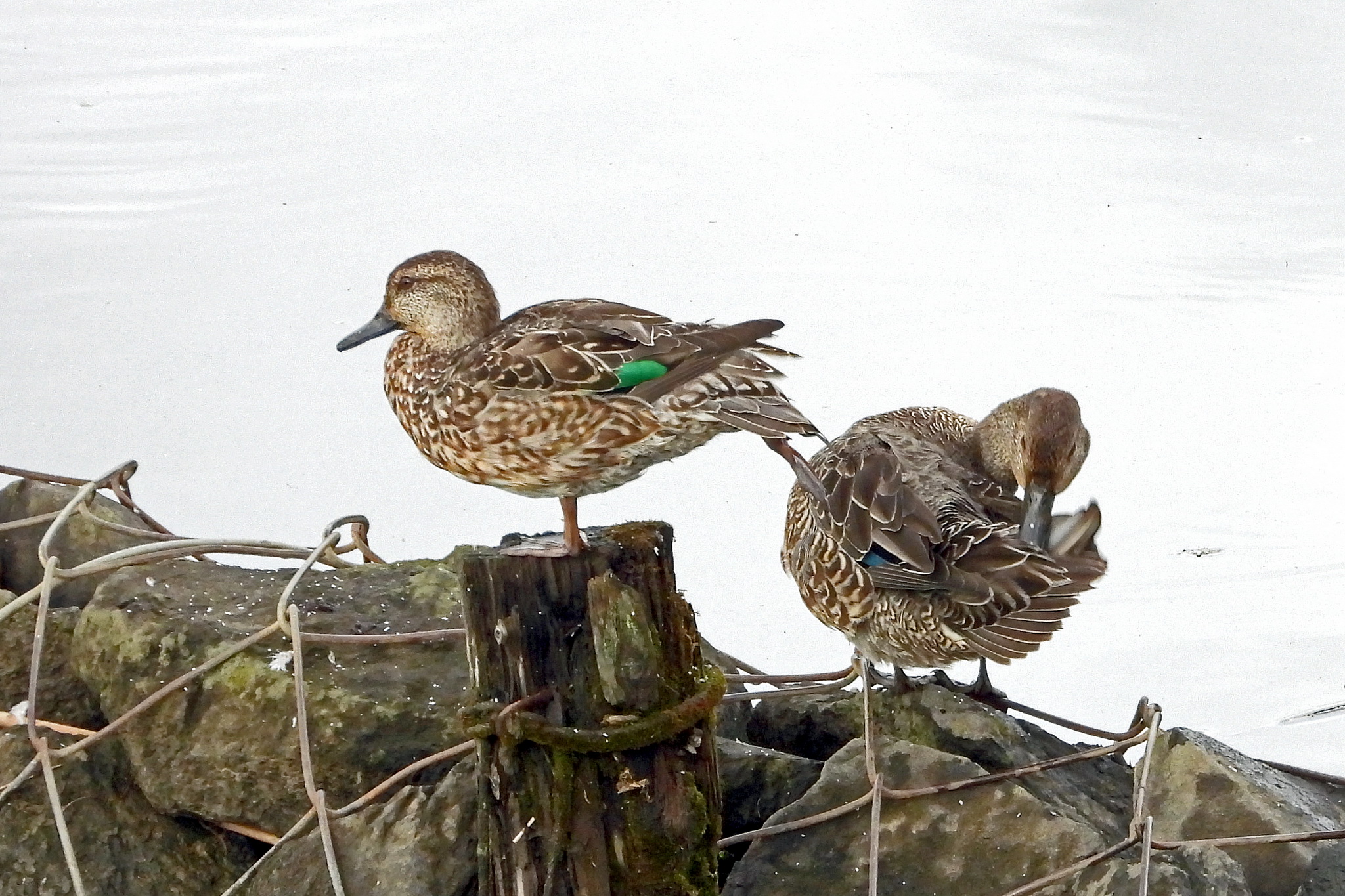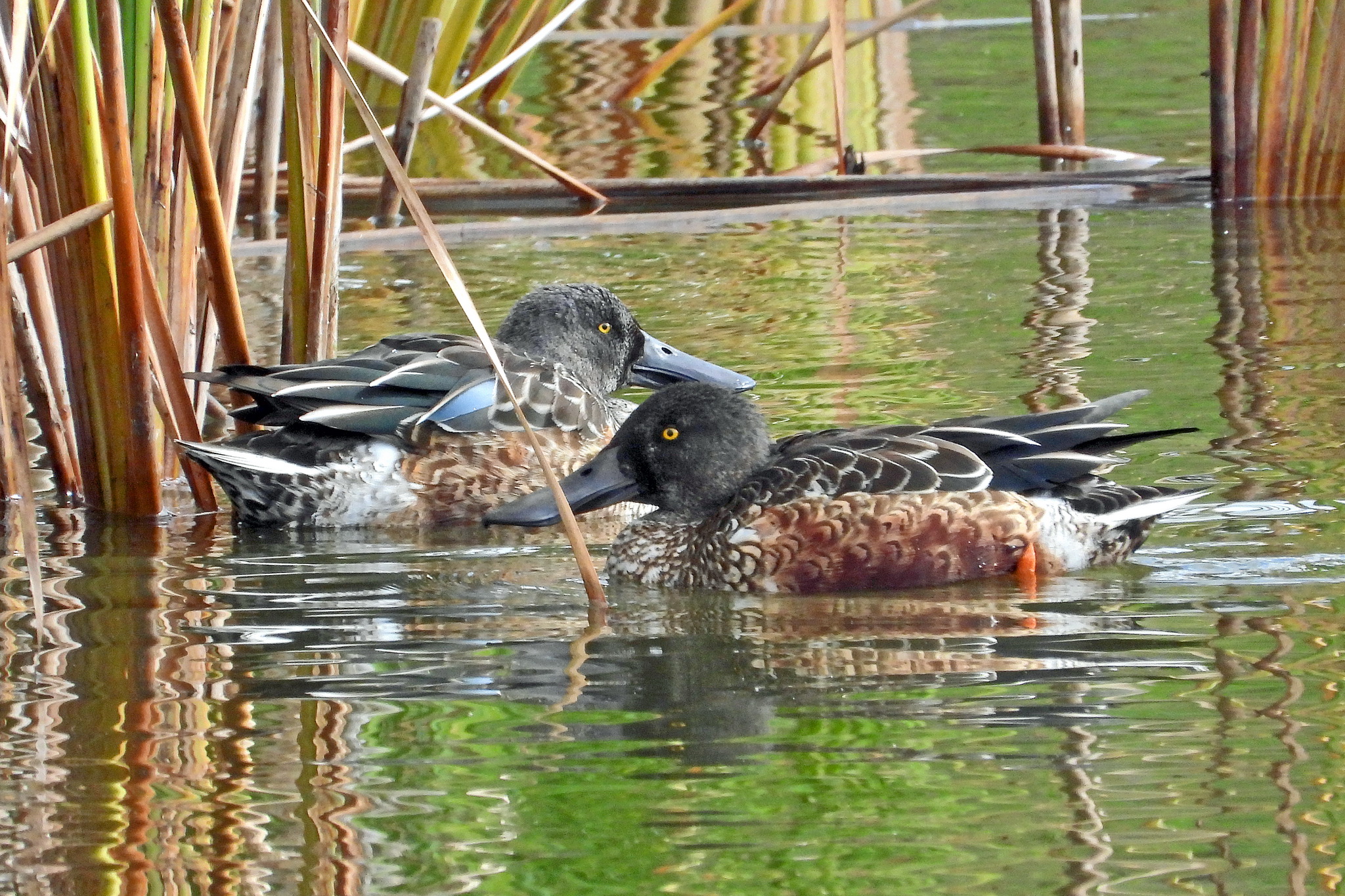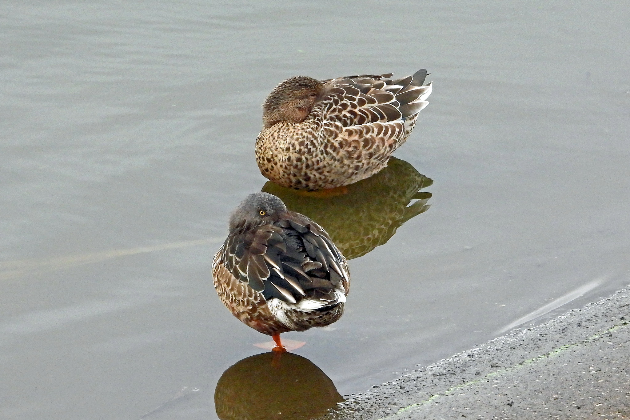 おっ、「ハシビロガモ」のオスが二羽居る。