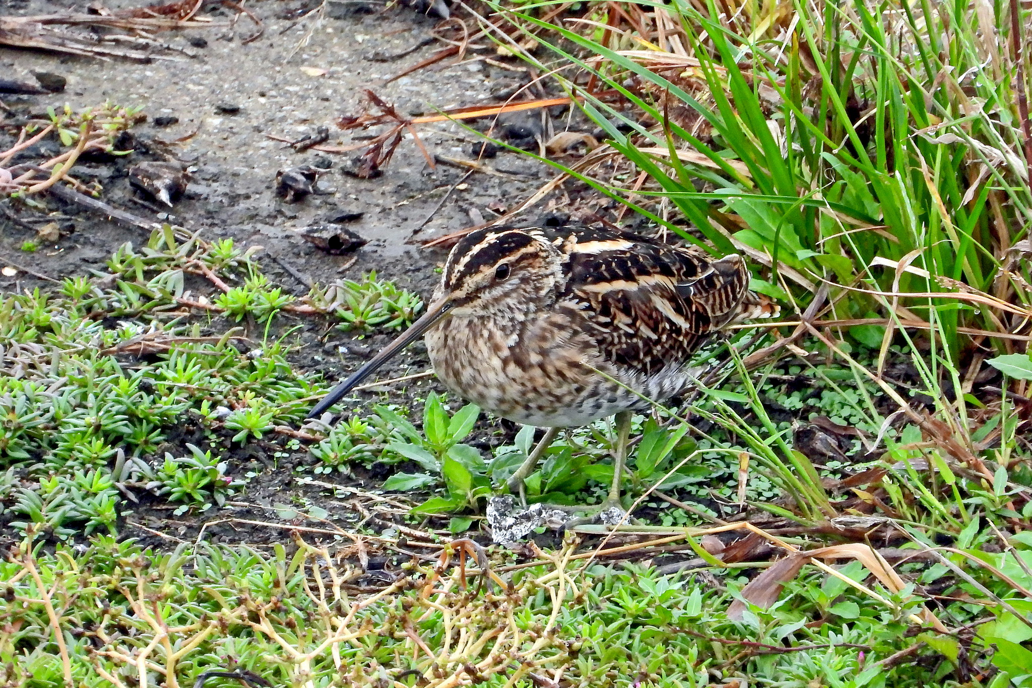 近くの犬走の草むらに「タシギ」が二羽居ると、職員の人に教えてもらいました。