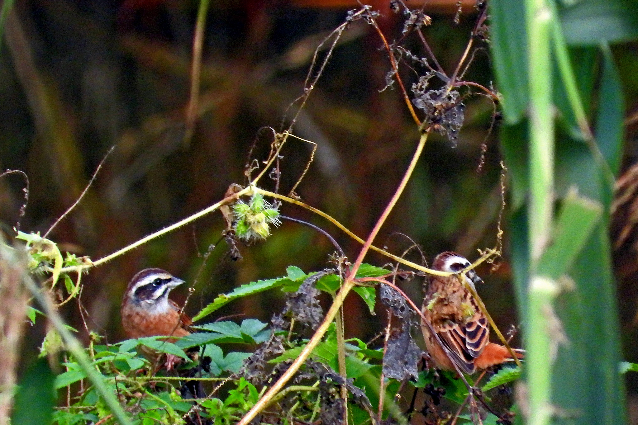 急いでズームアップすると、二羽の「ホオジロ」でした。