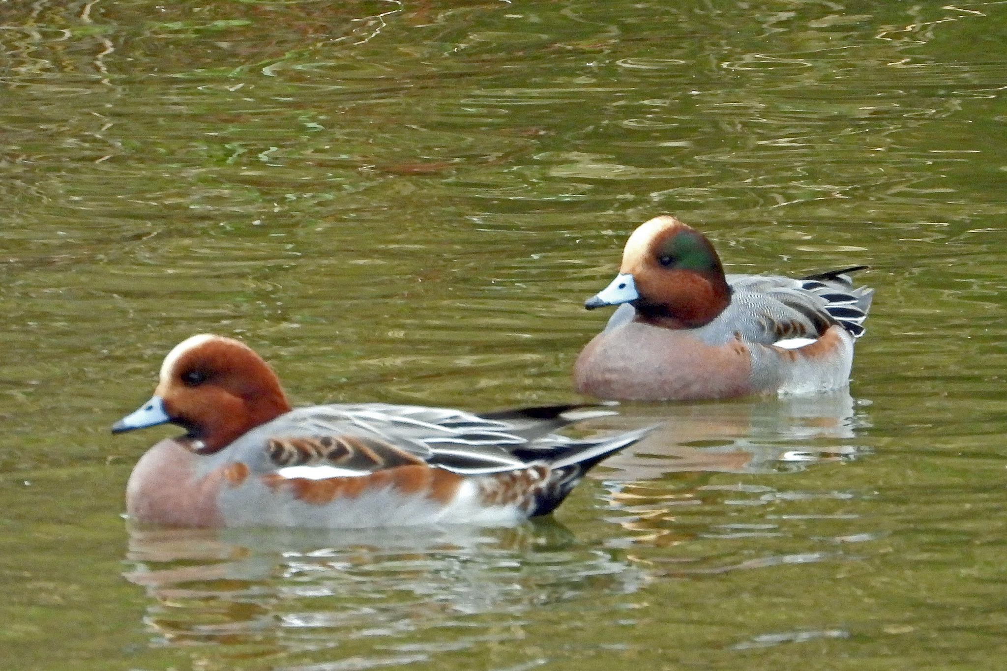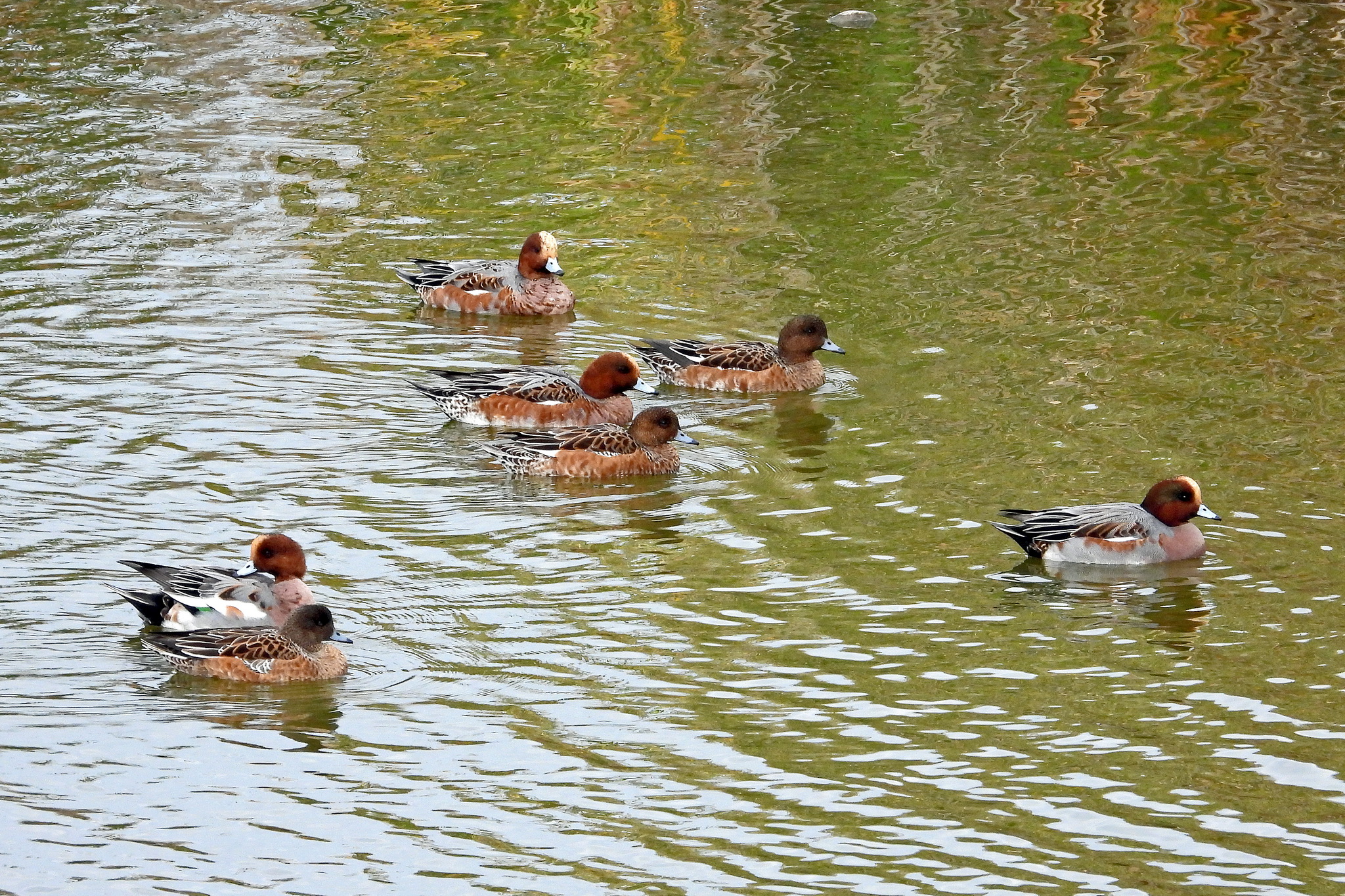 おっ、「ヒドリガモ」がたくさん集まってますね。
