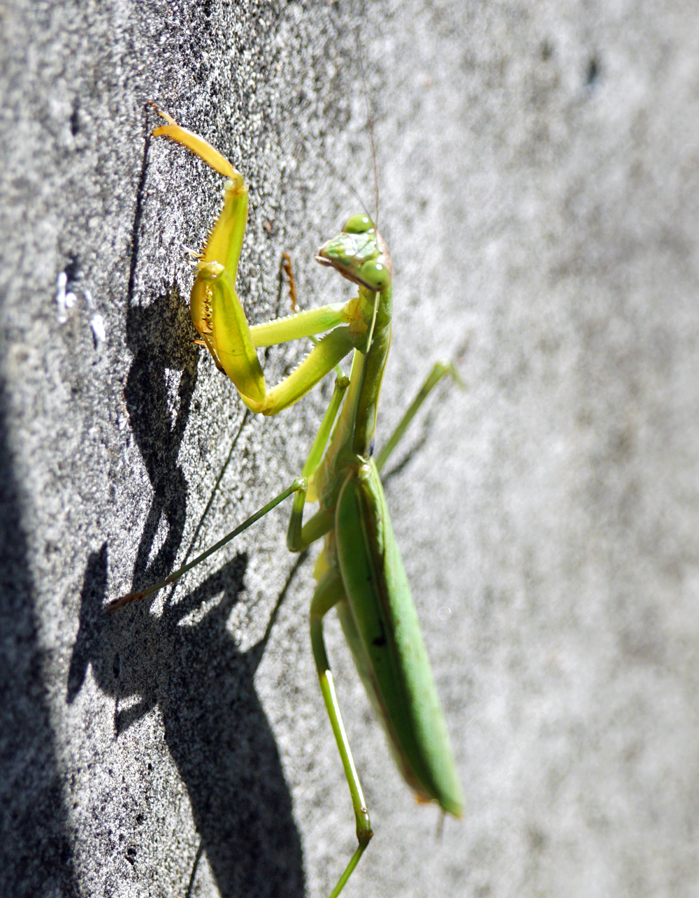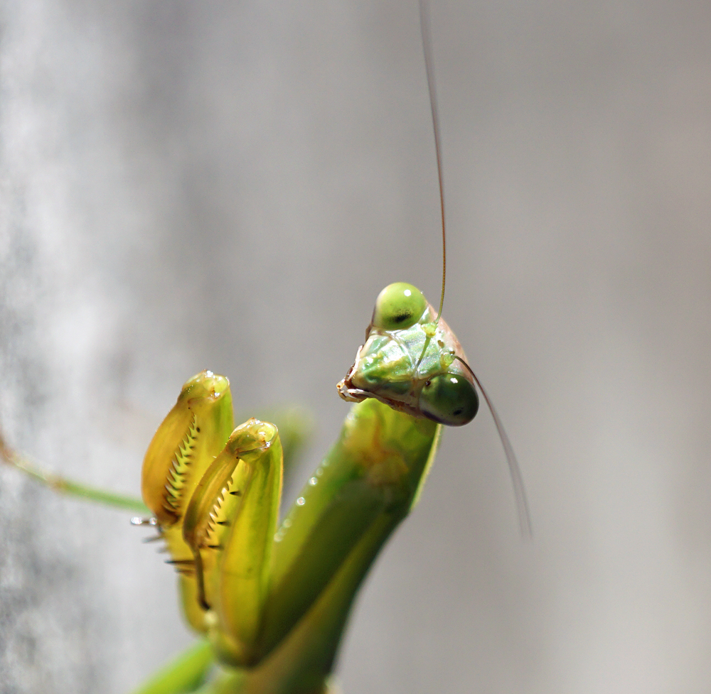 道端にオオカマキリ。 近づくと、ギロッとにらまれました。