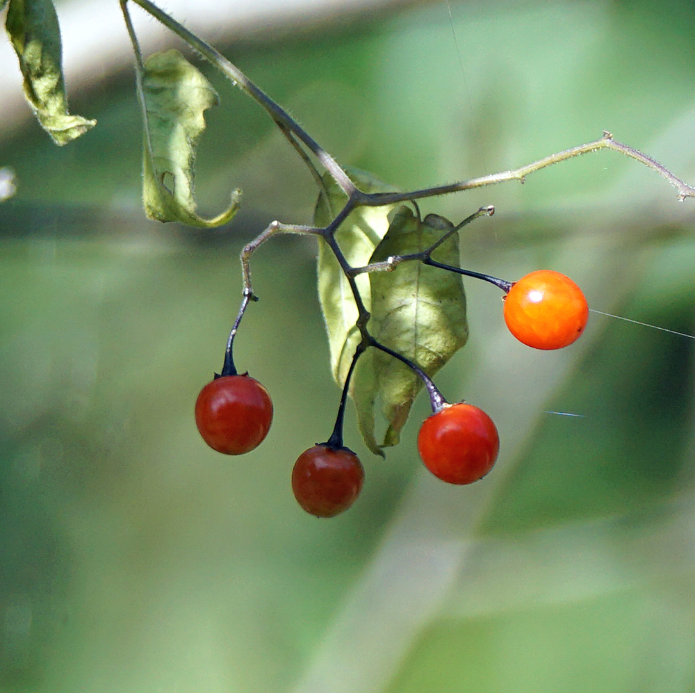 ヒヨドリジョウゴが赤い実を下げて。