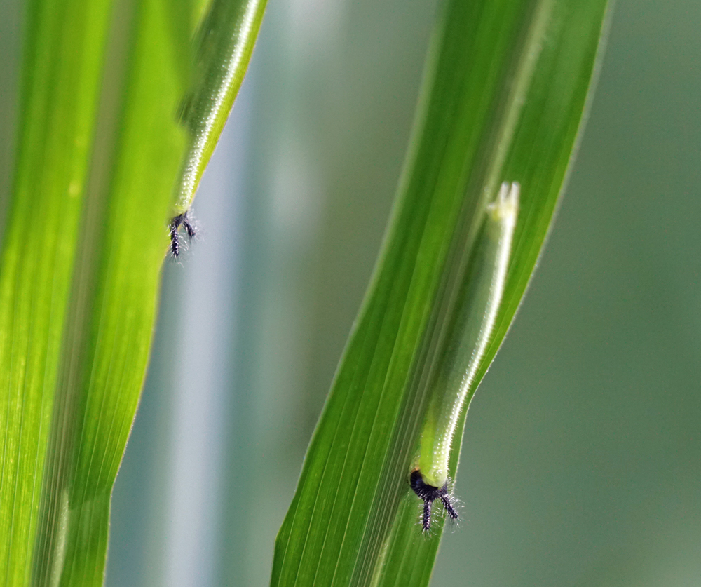 1度にこんなにたくさん見るのは初めてでした。 これまで、食草はジュズダマ、と思って、そればかり見ていましたが、ススキやオギ、ヨシなどの葉も食草のようです。