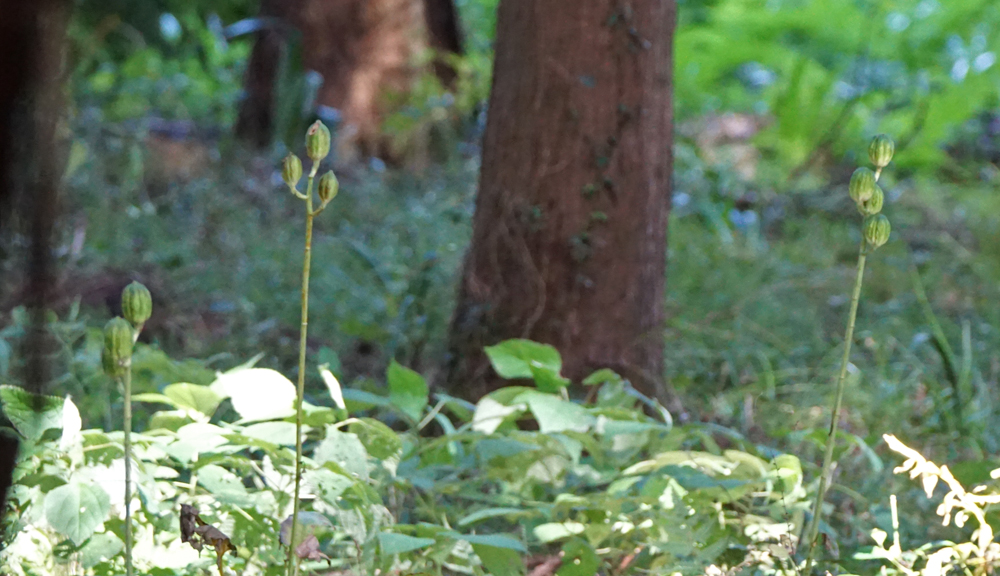 ウバユリの実がポツポツと立っていました。