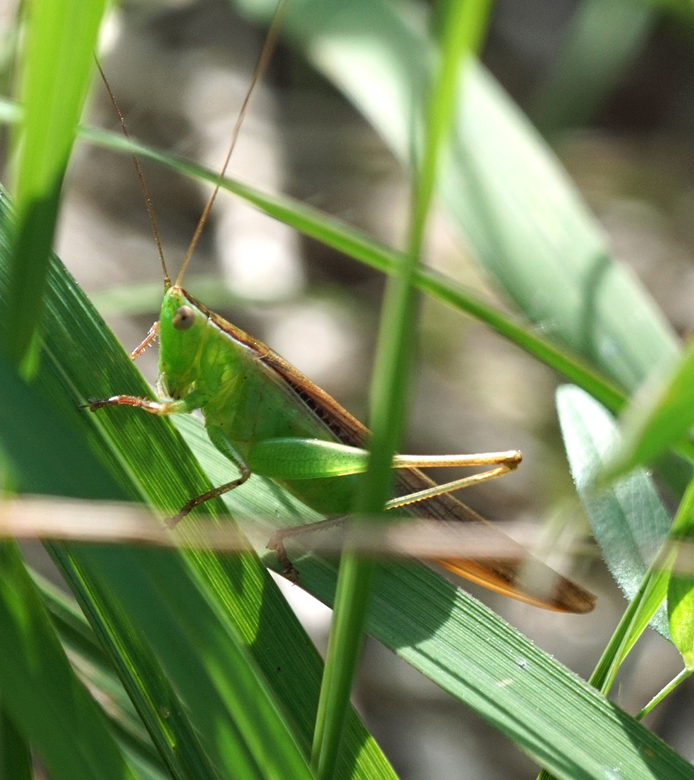 草陰にササキリの仲間。 ウスイロササキリかな。