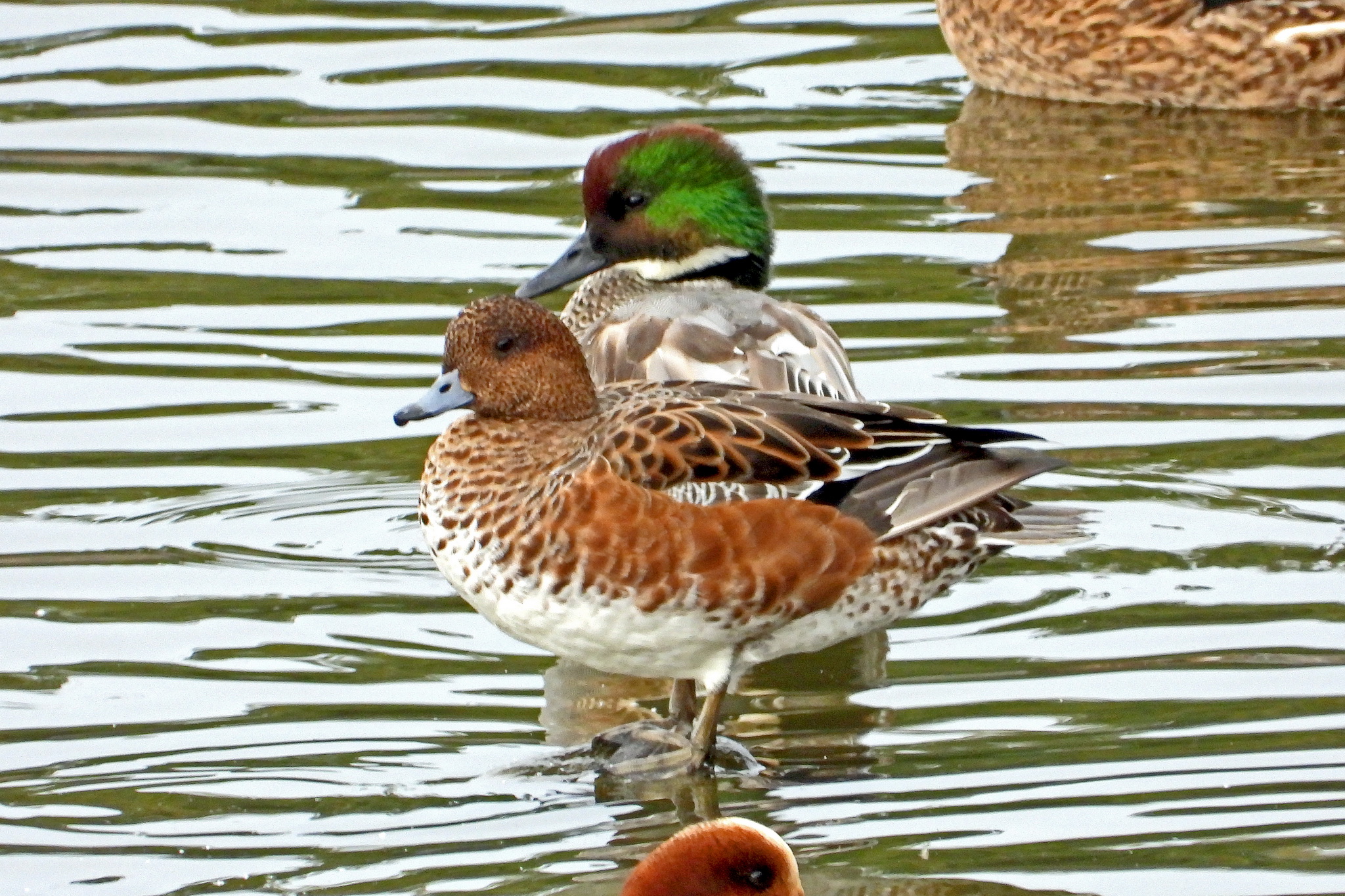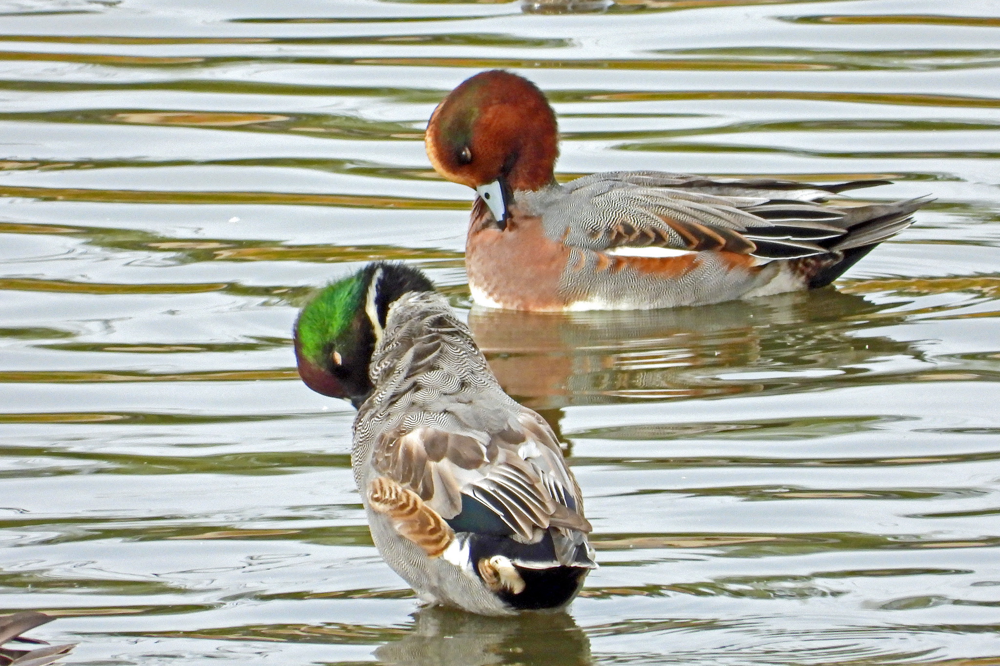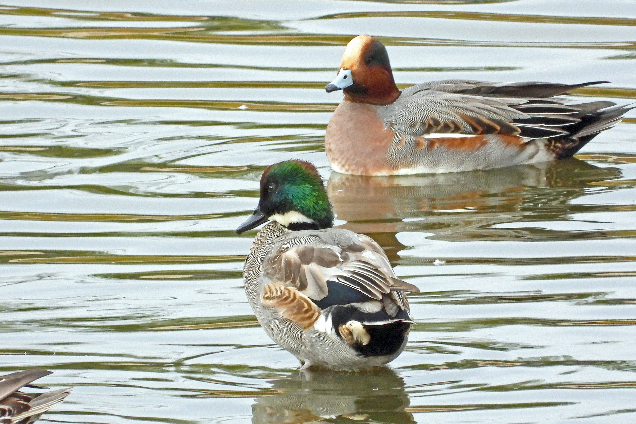 「ヒドリガモ」のオスとメスです。