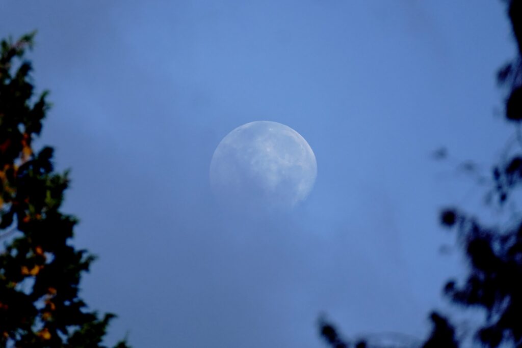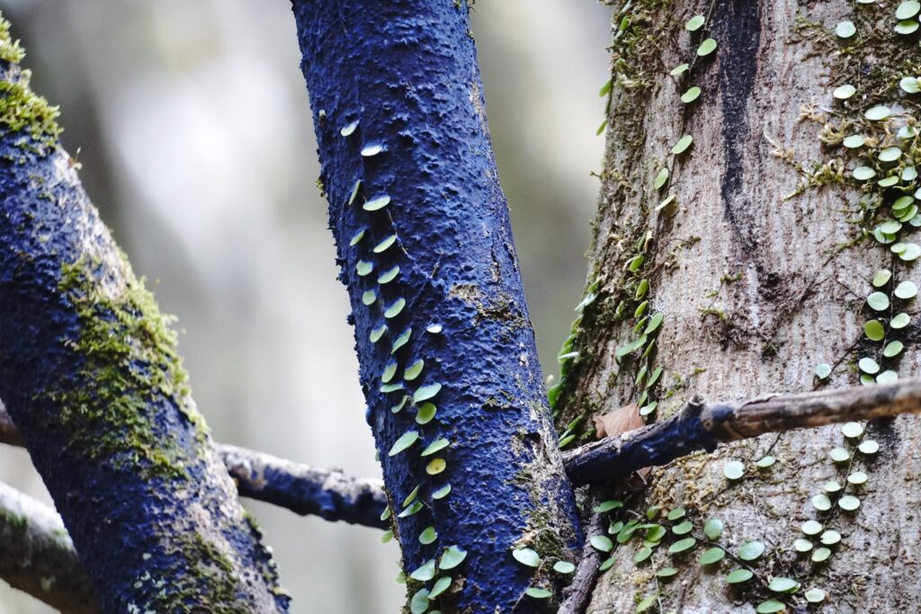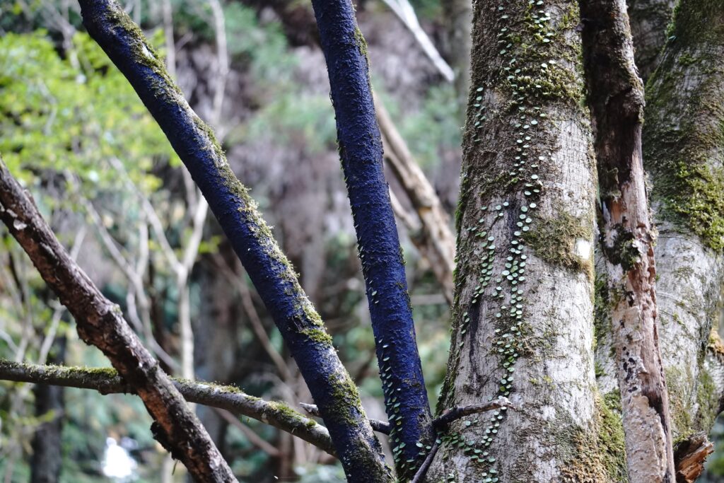 手が届かない高い枝ですが、ペンキを塗ったように青くなっているのが見えました
